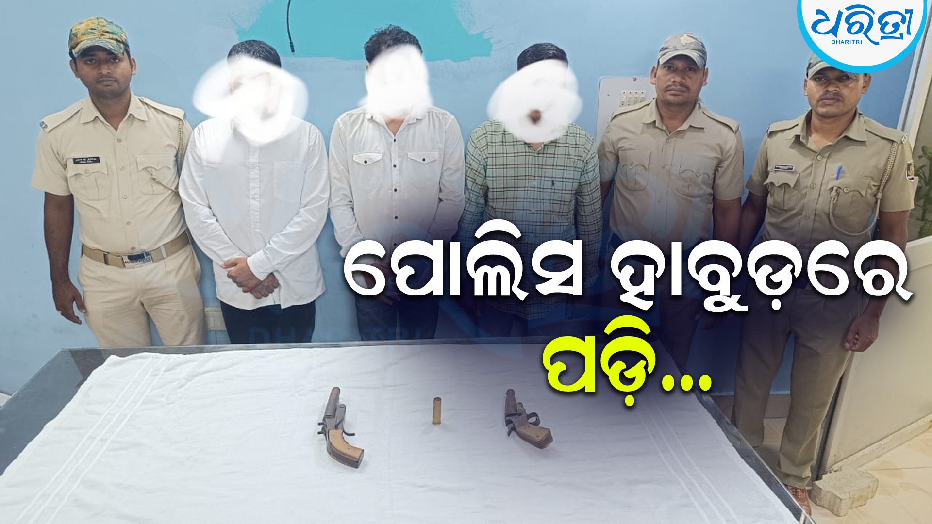 ଭଞ୍ଜନଗର,୨୨।୧୦(ବାବୁଲା ପ୍ରଧାନ)- ଗଞ୍ଜାମ ଜିଲା ଭଞ୍ଜନଗର ପୋଲିସ ବୁଧବାର ପାଟ୍ରୋଲିଂ କରୁଥିବା ସମୟରେ ୨ ଦେଶୀ ବନ୍ଧୁକ ଜବତ କରିଛି। ଏହି ଘଟଣାରେ ୩ଜଣଙ୍କୁ ଗିରଫ କରି କୋର୍ଟ ଚାଲାଣ କରାଯାଇଛି।