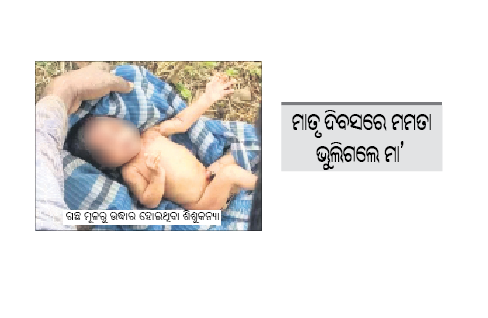 ବନ୍ତଳା,୯।୫(ଡି.ଏନ.ଏ.): ବିଶ୍ୱ ମାତୃ ଦିବସରେ ମମତା ଭୁଲିଗଲେ ମା’। ୩ ଦିନର ଶିଶୁକନ୍ୟାଙ୍କୁ ଏକ ଗଛମୂଳେ ଛାଡ଼ି କେହି କୁମାରୀ ମା’ ପଳାଇଯିବା ଅନୁଗୋଳ ଜିଲା ବନ୍ତଳା ଥାନା ପୋକତୁଙ୍ଗା ଗ୍ରାମରେ ରବିବାର ଚର୍ଚ୍ଚାର ବିଷୟ ହୋଇଛି। ଶିଶୁଟିର କାନ୍ଦ ଶୁଣି କେତେଜଣ ଛେଳି ଚରାଳି ଓ ଚାଷୀ ତାଙ୍କୁ ଉଦ୍ଧାର କରି ସ୍ବାସ୍ଥ୍ୟକେନ୍ଦ୍ରରେ ଭର୍ତ୍ତି କରିଛନ୍ତି। ଶିଶୁକନ୍ୟାଟି ଏବେ ସୁସ୍ଥ ଥିବା ସୂଚନା ମିଳିଛି।