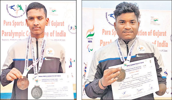 ଭୁବନେଶ୍ୱର,୩୧ା୧(ସ୍ପୋଟର୍ସ ବ୍ୟୁରୋ): ଗୁଜରାଟରେ ଅନୁଷ୍ଠିତ ଜାତୀୟ ଜୁନିୟର ଓ ସବ୍ ଜୁନିୟର ପାରା ଆଥଲେଟିକ୍ସ ଚାମ୍ପିୟନଶିପ୍ରେ ଓଡ଼ିଶାର ପ୍ରତିଯୋଗୀ ମାନେ ୩ ପଦକ ହାସଲ କରିଛନ୍ତି। ୧୭ ବର୍ଷରୁ କମ ଶଟପୁଟରେ ସତ୍ୟନାରାୟଣ ଜେନା (୮.୧୮ ମିଟର) ସ୍ବର୍ଣ୍ଣ ପଦକ ହାସଲ କରିଥିଲେ। ସେହିପରି ଟି-୧୧ ବର୍ଗର ୧୦୦ ମି. ଦୌଡରେ ଅବିନାଶ ସୌରା ରୌପ୍ୟ ଓ ଲମ୍ବ ଡିଆଁରେ ବ୍ରୋଞ୍ଜ ପଦକ ହାସଲ କରିଥିଲେ। ୧୩.୭୭ ସେକେଣ୍ଡର ସମୟ ନେଇ ସେ ରୌପ୍ୟ ପଦକ ହାସଲ କରିଥିବା ବେଳେ ୪.୫୯ ମିଟର ଦୂରତ୍ୱ ଅତିକ୍ରମ କରି ସେ ବ୍ରୋଞ୍ଜ ପଦକ ହାସଲ କରିଥିଲେ।