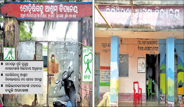 ଅନୁସୂଚିତ ଜାତି ଓ ଜନଜାତିର ଛାତ୍ରୀଛାତ୍ରଙ୍କୁ ସମସ୍ତ ସରକାରୀ ସୁବିଧା ଯୋଗାଇ ଦେଇ ହଷ୍ଟେଲରେ ରଖ ମାଗଣାରେ ପାଠ ପଢାଇବା ନିମନ୍ତେ ଆଶ୍ରମ ବିଦ୍ୟାଳୟ ପ୍ରତିଷ୍ଠା କରାଯାଇଛି। ଗୁମୀ ପଞ୍ଚାୟତ ଡିମିରିପଲ୍ଲୀଠାରେ ୧୯୫୦ରେ ଡିମିରିପଲ୍ଲୀ ଆଶ୍ରମ ବିଦ୍ୟାଳୟ ପ୍ରତିଷ୍ଠା କରାଯାଇଥିଲା। ଏଠାରେ ଛାତ୍ରୀବାସ ଖୋଲାଯାଇଛି। ଫଳରେ ଜିଲା ତଥା ଜିଲା ବାହାରୁ ଅନେକ ଛାତ୍ରୀ ହଷ୍ଟେଲରେ ରହି ପାଠ ପଢ଼ିବା ସହ ସ୍ଥାନୀୟ ଛାତ୍ରୀଛାତ୍ର ମଧ୍ୟ ପାଠ ପଢୁଛନ୍ତି। ପ୍ରମମରୁ ୮ମ ଶ୍ରେଣୀ ପର୍ଯ୍ୟନ୍ତ ୧୨୦ ଛାତୀଛାତ୍ର ପଢୁଥିବା ବେଳେ ସେମାନଙ୍କୁ ପଢ଼ାଇବା ପ୍ରଧାନ ଶିକ୍ଷକଙ୍କୁ ମିଶାଇ ମୋଟ ୩ ଜଣ ଶିକ୍ଷୟିତ୍ରୀଶିକ୍ଷକ ନିୟୋଜିତ ହୋଇଛନ୍ତି। ଉକ୍ତ ସ୍କୁଲରେ ପୂର୍ବରୁ ୪ ଜଣ ଶିକ୍ଷକ ଥିବା ବେଳେ ସେଥିମଧ୍ୟରୁ ଗଣିତ ଶିକ୍ଷକଙ୍କୁ ଅନ୍ୟ ସ୍କୁଲକୁ ଡେପୁଟେଶନରେ ପଠାଇ ଦିଆଯାଇଛି। ତେବେ ୩ ଜଣ ଶିକ୍ଷକଙ୍କ ଦ୍ୱାରା ୮ଟି ଶ୍ରେଣୀରେ ପାଠ ପଢ଼ାଇବା ସମ୍ଭବ ହେଉ ନ ଥିବାରୁ ଅଭିଭାବକଙ୍କ ମନରେ ଅସନ୍ତୋଷ ଦେଖାଦେଇଛି। ସେହିପରି ମାଇଛେଳି ପଞ୍ଚାୟତ ଗୋହିରିବାଦୁଠାରେ ୧୯୫୧ ରେ ଗୋହିରିବାଦୁ ଆଶ୍ରମ ବିଦ୍ୟାଳୟ ପ୍ରତିଷ୍ଠା କରାଯାଇଥିଲା। ଏହି ସ୍କୁଲରେ ମଧ୍ୟ ଶିକ୍ଷକ ସମସ୍ୟା ଲାଗି ରହିଛି। ପ୍ରଥମରୁ ୮ମ ଶ୍ରେଣୀ ପର୍ଯ୍ୟନ୍ତ ୧୧୧ ଜଣ ଛାତ୍ରୀଛାତ୍ର ରହିଛନ୍ତି। ସେମାନଙ୍କୁ ପଢ଼ାଇବା ପାଇଁ ମାତ୍ର ୩ ଜଣ ଶିକ୍ଷକ ନିୟୋଜିତ ହୋଇଛନ୍ତି। ସେଥି ମଧ୍ୟରୁ ଜଣେ ଶିକ୍ଷକ ପ୍ରଧାନ ଶିକ୍ଷକଙ୍କ କାମ କରୁଛନ୍ତି। ତେଣୁ କେତେବେଳେ ବ୍ଲକ କାର୍ଯ୍ୟାଳୟ ତ ଆଉ କେତେବେଳେ ଜିଲା ବିଭାଗୀୟ କାର୍ଯ୍ୟାଳୟକୁ ଦୌଡୁଛନ୍ତି। ତେଣୁ ଜଣେ ଶିକ୍ଷୟିତ୍ରୀ ଓ ଜଣେ ଶିକ୍ଷକ ୮ଟି ଶ୍ରେଣୀର ୧୧୧ ଜଣ ଛାତ୍ରୀଛାତ୍ରଙ୍କୁ ସମ୍ଭାଳୁଛନ୍ତି। ପୂର୍ବତନ ପ୍ରଧାନ ଶିକ୍ଷକ ଏପ୍ରିଲ ୨୦୨୩ରେ ଅବସରଗ୍ରହଣ କରିବା ପରେ ପ୍ରଧାନ ଶିକ୍ଷକ ଚୌକି ଖାଲିପଡ଼ିଛି। ଭବିଷ୍ୟତ ଗଢ଼ିବା ପାଇଁ ଜିଲା ବାହାରୁ ଛାତ୍ରୀଛାତ୍ର ଆସୁଥିବା ବେଳେ ସ୍କୁଲଗୁଡ଼ିକରେ ଶିକ୍ଷକ ଅଭାବ ସେମାନଙ୍କୁ ନିରାଶ କରୁଛି। ଶିକ୍ଷକ ପାଇଁ ଦାବି କଲେ ମଧ୍ୟ ଅଧିକାରୀ ଶୁଣୁ ନ ଥିବା କହୁଛନ୍ତି ଅଭିଭାବକ। ଶିକ୍ଷକ ପଦବୀ ପୂରଣ ବାବଦରେ ନୟାଗଡ଼ ଜିଲା ମଙ୍ଗଳ ଅଧିକାରୀ ଦୟାନିଧି ନାୟକଙ୍କୁ ପଚାରିବାରେ ଶିକ୍ଷକ ଅଭାବ ଥିବା ସ୍କୁଲଗୁଡିକୁ ଅତି ଶୀଘ୍ର ଶିକ୍ଷକ ଯୋଗାଇ ଦେବାର ବ୍ୟବସ୍ଥା କରୁଛୁ ବୋଲି ସେ କହିଛନ୍ତି।