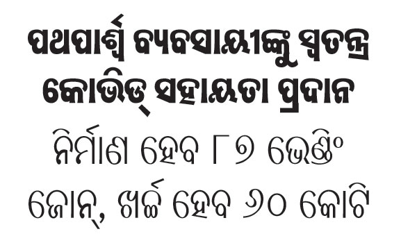 ଭୁବନେଶ୍ୱର, ୨୫।୧୨(ବ୍ୟୁରୋ): ରାଜ୍ୟର ୧୧୪ ସହରାଞ୍ଚଳର ୧ ଲକ୍ଷ ୧ ହଜାର ପଥପାର୍ଶ୍ୱ ବ୍ୟବସାୟୀଙ୍କୁ ମୁଖ୍ୟମନ୍ତ୍ରୀ ନବୀନ ପଟ୍ଟନାୟକ ଶୁକ୍ରବାର ତୃତୀୟ ପର୍ଯ୍ୟାୟରେ ୩୦୦୦ ଟଙ୍କା ଲେଖାଏ ସ୍ବତନ୍ତ୍ର କୋଭିଡ୍ ସହାୟତା ପ୍ରଦାନ କରିଛନ୍ତି। ଏଥିପୂର୍ବରୁ ମାର୍ଚ୍ଚ ୨୦୨୦ ଏବଂ ଜୁନ୍ ୨୦୨୧ରେ ୩୦୦୦ ଟଙ୍କା ଲେଖାଏ ସହାୟତା ଦିଆଯାଇଥିଲା। ରାଜ୍ୟର ବଜାର ସୁବିଧା ପାଇଁ ‘ମୁକ୍ତା’ ଯୋଜନାରେ ୮୭ଟି ସହରାଞ୍ଚଳରେ ଭେଣ୍ଡିଂ ଜୋନ୍ ନିର୍ମାଣ ହେବ। ଏଥିରେ ୬୦ କୋଟି ଟଙ୍କା ଖର୍ଚ୍ଚ କରାଯିବ ବୋଲି ମୁଖ୍ୟମନ୍ତ୍ରୀ ଘୋଷଣା କରିଛନ୍ତି।
