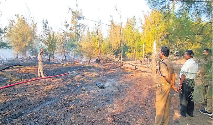 କୋଣାର୍କ,୨୨।୨(ଡି.ଏନ୍.ଏ): କୋଣାର୍କ ବାଲୁଖଣ୍ଡ ବନ୍ୟପ୍ରାଣୀ ଅଭୟାରଣ୍ୟ ଅନ୍ତର୍ଗତ କରମଙ୍ଗା ଇଡିସିରେ ରବିବାର ଅଗ୍ନିକାଣ୍ଡ ଘଟିଛି। ପ୍ରାୟ ୩୦ ଏକର ଜଙ୍ଗଲରେ ଥିବା ବହୁ ଝାଉଁ, ଆକାଶିଆ, କାଜୁଗଛ ପୋଡ଼ିଯାଇଛି। ତେବେ ନିଅଁା ଲାଗିବାର କାରଣ ସ୍ପଷ୍ଟ ହୋଇପାରିନାହିଁ।