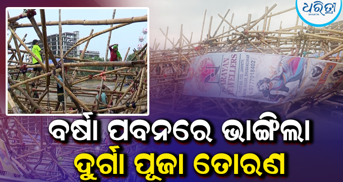 ଭୁବନେଶ୍ୱର,୬।୧୦: ଆଗକୁ ଦୁର୍ଗାପୂଜା। ଏନେଇ ଚଳଚଞ୍ଚଳ ହୋଇଉଠିଛି ରାଜଧାନୀ ଭୁବନେଶ୍ୱର। ବିଭିନ୍ନ ଦୁର୍ଗାପୂଜା କମିଟି ପକ୍ଷରୁ ସାଜସଜ୍ଜାକୁ ବିଶେଷ ଗୁରୁତ୍ୱ ଦିଆଯାଉଛି। ଏହି ପରିପ୍ରେକ୍ଷୀରେ ରବିବାର ଅପରାହ୍ନରେ ଭୁବନେଶ୍ୱରରେ ବର୍ଷା ସାଙ୍ଗକୁ ଜୋର୍ରେ ପବନ ବୋହିଥିଲା। ଏହି ବର୍ଷାପବନରେ ରସୁଲଗଡ଼ଠାରେ ନିର୍ମାଣ ହୋଇଥିବା ୩୦ ଫୁଟ ଉଚ୍ଚର ଏକ ଲାଇଟ୍ ତୋରଣ ଭାଙ୍ଗିଯାଇଛି।