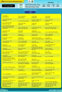 ଭୁବନେଶ୍ୱର,୨୭ା୯(ବ୍ୟୁରୋ): ରବିବାର ରାଜଧାନୀରୁ ୩୧୭ ପଜିଟିଭ୍ ଚିହ୍ନଟ ହୋଇଥିବା ବିଏମ୍ସି ପକ୍ଷରୁ ସୂଚନା ଦିଆଯାଇଛି। ଏହି ଆକ୍ରାନ୍ତଙ୍କ ମଧ୍ୟରୁ ୬୨ ଜଣ କ୍ୱାରାଣ୍ଟାଇନ୍ରୁ ଚିହ୍ନଟ ହୋଇଥିବା ବେଳେ ୨୫୫ ଜଣ ସ୍ଥାନୀୟ ସଂକ୍ରମିତ ଅଟନ୍ତି। ସେହିପରି ଆଜି ୩୧୨ ଜଣ ସୁସ୍ଥ ହୋଇ ଘରକୁ ଫେରିଛନ୍ତି।