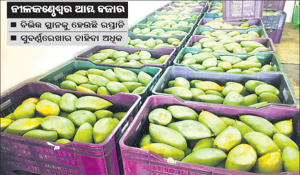 ବ୍ରହ୍ମପୁର ଅଫିସ,୧୬ା୫ଗଞ୍ଜାମ ଜିଲା ସମେତ ରାଜ୍ୟ ବାହାରୁ ଆମ୍ବ ରପ୍ତାନି କ୍ଷେତ୍ରରେ ବ୍ରହ୍ମପୁର ନୀଳକଣ୍ଠେଶ୍ୱର ଆମ୍ବ ବଜାରର ବିଶେଷ ଚାହିଦା ରହିଛି। ଏହି ବଜାରକୁ ପ୍ରତିଦିନ ୩୬୦ ଟନ୍ ଆମ୍ବ ଆସୁଛି। ଏଠାରୁ ଗଞ୍ଜାମ ସମେତ କଟକ, ଭୁବନେଶ୍ୱରକୁ ମଧ୍ୟ ପଠାଯାଉଛି। ଏପରିକି ସମଗ୍ର ଦକ୍ଷିଣ ଓଡ଼ିଶାର ଏହା ଆମ୍ବ ବ୍ୟବସାୟର ପେଣ୍ଠସ୍ଥଳୀ କହିଲେ ଅତ୍ୟୁକ୍ତି ହେବନାହିଁ। ବଜାରରେ ବର୍ତ୍ତମାନ ଆମ୍ବ ବିକ୍ରି ବୃଦ୍ଧି ପାଇଛି। ସୁବର୍ଣ୍ଣରେଖା ଆମ୍ବର ଚାହିଦା ଅଧିକ ଥିବା ଜଣାପଡ଼ିଛି।