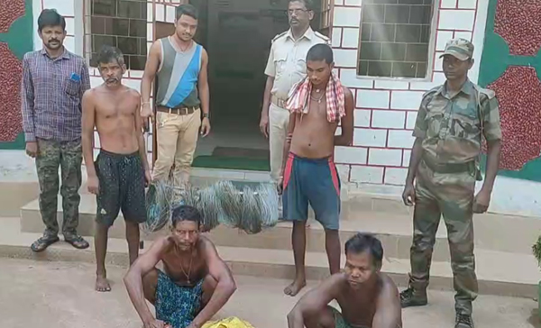 କେନ୍ଦୁଝର,୧୪।୬(ସ୍ବ.ପ୍ର): କେନ୍ଦୁଝର ଜିଲା ବନଖଣ୍ଡ ତେଲକୋଇ ବନାଞ୍ଚଳ ତାଳପଦା କଳାପାଟ ସଂରକ୍ଷିତ ଜଙ୍ଗଲରେ ବିଦ୍ୟୁତ୍ ତାର ହୁକିଂ କରି ଶିକାର କରିବା ବେଳେ ୪ ଜଣ ଶିକାରୀଙ୍କୁ ବନ ବିଭାଗ ଧରିବାରେ ସଫଳ ହୋଇଛି। ସେମାନେ ହେଲେ ଶିବନାରାୟଣପୁର ଗୋଡ଼ା ଗାଁର ବୁଧଦେବ ମୁଣ୍ଡା, ଗୋବର୍ଦ୍ଧନ ମହାନ୍ତ, ଡମ୍ବରୁ ନାୟକ ଓ ଗୁରୁଚରଣ ନାୟକ।