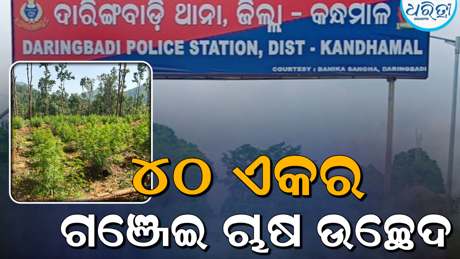 ଦାରିଙ୍ଗବାଡି,୫।୧୧(ଅରୁଣ ସାହୁ) : କନ୍ଧମାଳ ଜିଲା ଦାରିଙ୍ଗବାଡି ଥାନା ଅଞ୍ଚଳ କାଡଶପାଟା ଗ୍ରାମ ନିକଟ ଜଙ୍ଗଲରେ ବୁଧବାର ପୋଲିସର ବଡ଼ ଚଢ଼ାଉ। ଗୋପନ ସୂଚନା ମିଳିବା ପରେ ଡିଏସପି କନକ ମାଝୀଙ୍କ ନେତୃତ୍ୱରେ ଆଇଆଇସି ଜୟନ୍ତ କୁମାର ସେଠି, ଅବକାରୀ ବିଭାଗ କର୍ମଚାରୀ ଓ ଏକଜିକ୍ୟୁଟିଭ ମ୍ୟାଜିଷ୍ଟ୍ରେଟ ଦୁଃଶାସନ ସ୍ୱାଇଁଙ୍କ ଉପସ୍ଥିତିରେ ସାଲେଜୁ ଏବଂ କାଡଶପାଟା ଅଞ୍ଚଳରେ ପ୍ରାୟ ୪୦ ଏକର ଜମିରେ ଚାଷ ହୋଇଥିବା ଗଞ୍ଜେଇ ଗଛ କାଟି ନିଆଁ ଲଗାଇ ସମ୍ପୂର୍ଣ ନଷ୍ଟ କରାଯାଇଛି।
