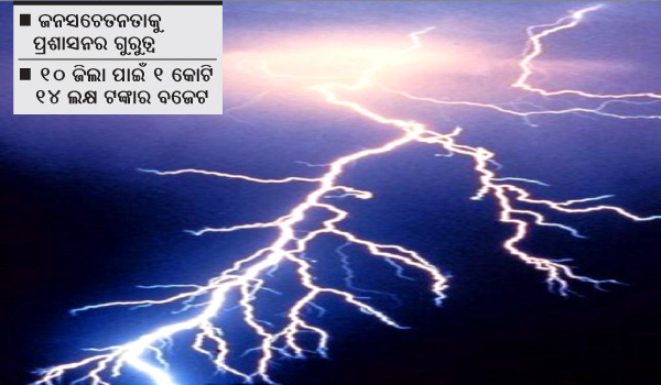 ବଜ୍ରପାତରୁ ଲୋକଙ୍କୁ ରକ୍ଷା କରିବା ନିମନ୍ତେ ୨୦୨୩-୨୪ ପାଇଁ ପ୍ରାକୃତିକ ବିପର୍ଯ୍ୟୟ ପରିଚାଳନା ଆଇନ-୨୦୦୫ ଅନୁସାରେ ଏକ ଷ୍ଟେଟ ଏକ୍ଜିକ୍ୟୁଟିଭ କମିଟି ଗଠନ କରାଯାଇଛି। ଗତ ୨ ତାରିଖରେ ଏହି କମିଟିର ପ୍ରଥମ ବୈଠକର ନିଷ୍ପତ୍ତି ଅନୁସାରେ ପ୍ରଥମ ପର୍ଯ୍ୟାୟରେ ବଜ୍ରପାତରେ ଅଧିକ ମୃତ୍ୟୁ ହେଉଥିବା ୧୦ ଜିଲାରେ ଏକ ସ୍ବତନ୍ତ୍ର ସଚେତନତା କାର୍ଯ୍ୟକ୍ରମ ହାତକୁ ନିଆଯିବ। ଏଥିରେ ମୟୂରଭଞ୍ଜ, ଗଞ୍ଜାମ, କେନ୍ଦୁଝର, ବାଲେଶ୍ୱର, କଟକ, ସୁନ୍ଦରଗଡ଼, ନବରଙ୍ଗପୁର, ଯାଜପୁର, ବଲାଙ୍ଗୀର ଓ କୋରାପୁଟ ଜିଲା ରହିଛି। ଏଥିପାଇଁ ୧ କୋଟି ୧୪ ଲକ୍ଷ ଟଙ୍କାର ବଜେଟ ପ୍ରସ୍ତୁତ କରାଯାଇଛି। ଏହି ଅର୍ଥରେ ଘଡ଼ଘଡ଼ି ଓ ବଜ୍ରପାତ ସମ୍ପର୍କରେ ପୋଷ୍ଟର ତିଆରି, ଗ୍ରାମ୍ୟସ୍ତରରେ ପଥପ୍ରାନ୍ତ ନାଟକ ଓ ଲୋକନୃତ୍ୟ, ବିଭିନ୍ନ ଗଣମାଧ୍ୟମରେ ବିଜ୍ଞାପନ, ସଚେତନତା ରଥ ପରିକ୍ରମା, ହାଟ ଆଦି ଜନଗହଳି ସ୍ଥାନରେ ସଚେତନତା କ୍ୟାମ୍ପ, ଅଡିଓ/ଭିଡିଓ ଭିଜୁଆଲ, ୱାଲ ପେଣ୍ଟିଂ, ସ୍କୁଲ ଓ କଲେଜସ୍ତରରେ ସଚେତନତା କାର୍ଯ୍ୟକ୍ରମ, ଏସ୍ଏଚ୍ଜି ସଭ୍ୟାସଭ୍ୟଙ୍କ ମଧ୍ୟରେ ସଚେତନତା ବୈଠକ, କୃଷକ ଏବଂ କୃଷି ଉପତ୍ାଦକ ସଂସ୍ଥାଗୁଡ଼ିକୁ ନେଇ ବୈଠକ ଆଦି କାର୍ଯ୍ୟକ୍ରମ କରାଯିବ। ସରକାରୀ ସୂତ୍ରରୁ ମିଳିଥିବା ସୂଚନା ଅନୁସାରେ ସମୁଦାୟ ପ୍ରାକୃତିକ ବିପର୍ଯ୍ୟୟଜନିତ ମୃତ୍ୟୁ ମଧ୍ୟରୁ ବଜ୍ରପାତରେ ୨୫ ପ୍ରତିଶତରୁ ଅଧିକ ମୃତ୍ୟୁ ରହିଛି। ରାଜ୍ୟ ସରକାର ବଜ୍ରପାତ ମୃତ୍ୟୁକୁ ୨୦୧୫ରେ ଷ୍ଟେଟ ସ୍ପେଶିଫିକ୍ ଡିଜାଷ୍ଟର ଭାବେ ଘୋଷଣା କରିଛନ୍ତି। ଏହିକ୍ରମରେ କ୍ଷତିଗ୍ରସ୍ତ ପରିବାରବର୍ଗଙ୍କୁ ୪ ଲକ୍ଷ ଟଙ୍କାର ସହାୟତା ପ୍ରଦାନ କରାଯାଉଛି। ତେବେ ସଚେତନତା ଅଭାବରୁ ବଜ୍ରପାତ ମୃତ୍ୟୁହାର ନିୟନ୍ତ୍ରଣ ହୋଇପାରୁନି ବୋଲି ମତପ୍ରକାଶ ପାଇଛି।