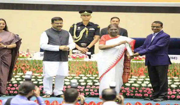 ନୂଆଦିଲ୍ଲୀ,୫।୯: ବିଦ୍ୟାଳୟ ଶିକ୍ଷାକ୍ଷେତ୍ରକୁ ଉଲ୍ଲେଖନୀୟ ଅବଦାନ ପାଇଁ ଦେଶର ୪୬ ଜଣ ଶିକ୍ଷକଙ୍କୁ ରାଷ୍ଟ୍ରପତି ଦ୍ରୌପଦୀ ମୁର୍ମୁ ସୋମବାର ଗୁରୁଦିବସ ଅବସରରେ ଜାତୀୟ ପୁରସ୍କାରରେ ସମ୍ମାନିତ କରିଛନ୍ତି। ପଞ୍ଜାବ, ମହାରାଷ୍ଟ୍ର, ରାଜସ୍ଥାନ, ହିମାଚଳ ପ୍ରଦେଶ, ତେଲେଙ୍ଗାନା ଉତ୍ତରାଖଣ୍ଡ, ମଧ୍ୟପ୍ରଦେଶ, ବିହାର, ସିକିମ୍, କର୍ନାଟକ, ହରିଆଣା, ଛତିଶଗଡ଼ ସମେତ ଅନ୍ୟାନ୍ୟ ରାଜ୍ୟର ଶିକ୍ଷକଙ୍କୁ ଏହି ପୁରସ୍କାର ପ୍ରଦାନ କରାଯାଇଥିଲା। ସେହିପରି ପୁରସ୍କୃତ ଶିକ୍ଷକଙ୍କ ମଧ୍ୟରେ ଓଡ଼ିଶାର ଈଶ୍ୱର ଚନ୍ଦ୍ର ନାୟକ ମଧ୍ୟ ରହିଛନ୍ତିି। ସେ ନିମାପଡ଼ା ଅଞ୍ଚଳର ସଗଡ଼ା ପଞ୍ଚାୟତ ଅନ୍ତର୍ଗତ କାନପୁର ପ୍ରାଥମିକ ବିଦ୍ୟାଳୟରେ ଶିକ୍ଷକତା କରୁଛନ୍ତି। ଏହି ଅବସରରେ ରାଷ୍ଟ୍ରପତି ବିଜ୍ଞାନ, ସାହିତ୍ୟ ଓ ସାମାଜିକ ବିଜ୍ଞାନରେ ମେଧା ବିକାଶ ଉପରେ ଗୁରୁତ୍ୱ ଦେଇଛନ୍ତି। ମାତୃଭାଷାରେ ଶିକ୍ଷାଦାନ ଦ୍ୱାରା ଏହା ଅଧିକ ପ୍ରଭାବୀ ହୋଇପାରିବ ବୋଲି ରାଷ୍ଟ୍ରପତି କହିଛନ୍ତି। ସେଥିପାଇଁ ଜାତୀୟ ଶିକ୍ଷାନୀତି ୨୦୨୦ରେ ସ୍କୁଲ ଶିକ୍ଷା ଏବଂ ଉଚ୍ଚଶିକ୍ଷାରେ ଭାରତୀୟ ଭାଷାର ବ୍ୟବହାର ଉପରେ ଗୁରୁତ୍ୱ ଦିଆଯାଇଛି। ପିଲାମାନଙ୍କଠାରେ ପ୍ରଶ୍ନ ପଚାରିବାର ଅଭ୍ୟାସ ବଢ଼ାଇବାକୁ ରାଷ୍ଟ୍ରପତି ଶିକ୍ଷକମାନଙ୍କୁ ଅନୁରୋଧ କରିଥିଲେ। ଅଧିକ ପ୍ରଶ୍ନ ପଚାରିବା ଓ ଉତ୍ତର ଦେବା ଦ୍ୱାରା ସେମାନଙ୍କ ସମସ୍ୟାର ସମାଧାନ ହେବା ସହ ଜ୍ଞାନ ବୃଦ୍ଧି ହୋଇପାରିବ ବୋଲି ସେ କହିଛନ୍ତି। ଶିକ୍ଷା ମନ୍ତ୍ରଣାଳୟ ଦ୍ୱାରା ବିଜ୍ଞାନ ଭବନରେ ଆୟୋଜିତ ଏହି ଉତ୍ସବରେ ବହୁ ବିଶିଷ୍ଟ ବ୍ୟକ୍ତି ଯୋଗଦେଇଥିଲେ।