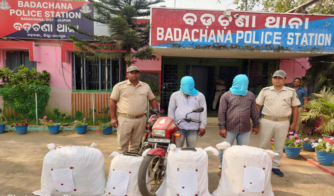 ଚଣ୍ଡିଖୋଲ,୭।୩(ଡି.ଏନ୍.ଏ.): ଯାଜପୁର ଜିଲା ବଡ଼ଚଣା ପୋଲିସ ଓ ସ୍ପେଶାଲ ସ୍କ୍ବାଡ୍ ମିଳିତ ଚଢ଼ାଉ କରି ମଙ୍ଗଳବାର କୋଲସାହି ଗାଁରୁ ୮୪ କେଜି ଗଞ୍ଜେଇ ଜବତ କରିଛି। ଏହା ସହ ୨ ଜଣଙ୍କୁ ଗିରଫ କରିଛି। ସେମାନେ ହେଲେ କୋଲସାହି ଗାଁର ଗୋବିନ୍ଦ ବିଶୋୟୀ ଓ ଅନ୍ୟଜଣେ ଉଦୟ ଶଙ୍କର ବିଶ୍ୱାସ ମାଲକାନଗିରି ଜିଲାର ଏମ୍ପିଭି ୩୭ ବୋଲି ଏସ୍ଡିପି ଓ ସୂଚନା ଦେଇଛନ୍ତି। ଯାଜପୁର ଏସ୍ପି ଭିନୀତ୍ ଅଗ୍ରୱାଲଙ୍କ ନିର୍ଦ୍ଦେଶ କ୍ରମେ ଏହି ଚଢ଼ାଉ ହୋଇଥିଲା। ଏଥିସହିତ ଗୋଟିଏ ମୋଟର ସାଇକେଲ ଓ ମୋବାଇଲ ଜବତ ହୋଇଛି। ଗଞ୍ଜେଇର ମୂଲ୍ୟ ୩ ଲକ୍ଷ ୩୬ ହଜାର ଟଙ୍କା ବୋଲି ପୋଲିସ କହିଛି। ବଡଚଣା ଥାନାରେ ଏକ ଖବରଦାତା ସମ୍ମିଳନୀରେ ଯାଜପୁର ଏସଡିପିଓ ସଞ୍ଜୟ କୁମାର ପଟ୍ଟନାୟକ ମଙ୍ଗଳବାର ଏହି ସୂଚନା ଦେଇଛନ୍ତି। ସୋମବାର ବିଳମ୍ବିତ ରାତିରେ ୨ ଜଣ ମୋଟର ସାଇକେଲ ଯୋଗେ ଗଞ୍ଜେଇ ନେଇ ଯାଉଥିବା ନେଇ କୌଣସି ସୂତ୍ରରୁ ଯାଜପୁର ଏସ୍ପି ଅଗ୍ରୱାଲ ଜାଣିବାକୁ ପାଇଥିଲେ। ସେ ସଙ୍ଗେସଙ୍ଗେ ଚଢ଼ାଉ କରିବାକୁ ନିର୍ଦ୍ଦେଶ ଦେଇଥିଲେ ।