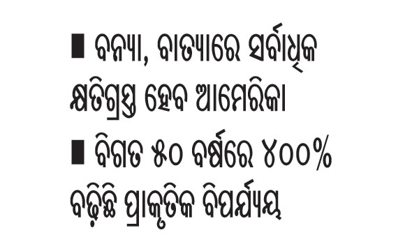 ଫାର୍ମ ଜିଏଚ୍ଡି ପକ୍ଷରୁ ଆକଳନ କରାଯାଇଛି। ବିଗତ ୫୦ ବର୍ଷରେ ହୋଇଥିବା ବିପର୍ଯ୍ୟୟଜନିତ କ୍ଷୟକ୍ଷତିଠାରୁ ଏହି ପରିମାଣ ଢେର ଅଧିକ। ୧୯୭୦ରୁ ୨୦୨୧ ମଧ୍ୟରେ ଘଟିଥିବା ସମସ୍ତ ପ୍ରାକୃତିକ ବିପର୍ଯ୍ୟୟରେ ବିଶ୍ୱକୁ ୩.୬୪ ଟ୍ରିଲିୟନ୍ ଡଲାର କ୍ଷତି ସହିବାକୁ ପଡ଼ିଥିବା ବିଶ୍ୱ ପାଣିପାଗ ସଙ୍ଗଠନ (ଡବ୍ଲ୍ୟୁଏମ୍ଓ) ତଥ୍ୟରୁ ସ୍ପଷ୍ଟ ହୋଇଛି। ଆଗାମୀ ୩୦ ବର୍ଷରେ କେବଳ ଆମେରିକା ୩.୭ ଟ୍ରିଲିୟନ୍ ଡଲାର କ୍ଷତି ସହିବ ବୋଲି ଜିଏଚ୍ଡିର ପାଣିପାଗ ବିଜ୍ଞାନୀମାନେ ଭବିଷ୍ୟବାଣୀ କରିଛନ୍ତି। ଗତ ଏପ୍ରିଲରେ ଆମେରିକାର ଅଫିସ୍ ଅଫ୍ ମ୍ୟାନେଜମେଣ୍ଟ ଆଣ୍ଡ ବଜେଟ ପକ୍ଷରୁ କରାଯାଇଥିବା ଏକ ବିଶ୍ଳେଷଣରୁ ଜଣାପଡ଼ିଥିଲା ଯେ, ଜଳବାୟୁ ପରିବର୍ତ୍ତନର ପ୍ରଭାବ ଯୋଗୁ ୨୧୦୦ ମସିହା ସୁଦ୍ଧା ଆମେରିକୀୟ ବଜେଟର ବାର୍ଷିକ ୨ ଟ୍ରିଲିୟନ୍ ଡଲାର କ୍ଷତି ହେବ। ଜଳବାୟୁ ବିଜ୍ଞାନୀଙ୍କ ଏହି ନକାରାମତ୍କ ଦୃଷ୍ଟିକୋଣ ଏଭଳି ସମୟରେ ଦେଖିବାକୁ ମିଳିଛି, ଯେତେବେଳେ କି ଆମେରିକା ଆଧୁନିକ ଇତିହାସରେ ଜଳବାୟୁ ପରିବର୍ତ୍ତନର ସବୁଠୁ ଭୟଙ୍କର ଦୁଷ୍ପରିଣାମ ଭୋଗୁଛି। କେବଳ ୨୦୨୧ ପ୍ରାକୃତିକ ବିପର୍ଯ୍ୟୟ ଯୋଗୁ ବିଶ୍ୱର ୨୫୨ ବିଲିୟନ୍ ଡଲାର ଆର୍ଥିକ କ୍ଷତି ହୋଇଛି। ଏହି କ୍ଷତିର ପରିମାଣ ୨୦୨୦ ତୁଳନାରେ ୪୭% ଏବଂ ବିଗତ ଦୁଇ ଦଶନ୍ଧି ତୁଳନାରେ ହାରାହାରି ୬୬% ଅଧିକ ବୋଲି ସେଣ୍ଟର ଫର୍ ରିସର୍ଚ୍ଚ ଅନ୍ ଏପିଡେମିଓଲୋଜି ଅଫ୍ ଡିଜିଜେସ୍ ଦ୍ୱାରା ପରିଚାଳିତ ଏମର୍ଜେନ୍ସି ଇଭେଣ୍ଟ୍ସ ଡାଟାବେସ୍ ପକ୍ଷରୁ ସୂଚନା ଦିଆଯାଇଛି। ଗତବର୍ଷ ମୋଟ ୪୩୨ଟି ବିପର୍ଯ୍ୟୟ ସୃଷ୍ଟିକାରୀ ପ୍ରାକୃତିକ ଘଟଣା ଦେଖିବାକୁ ମିଳିଥିଲା, ଯାହାକି ପ୍ରତିବର୍ଷର ହାରାହାରି ବିପର୍ଯ୍ୟୟ ତୁଳନାରେ ବହୁଗୁଣ ବୋଲି ଗତ ମାର୍ଚ୍ଚରେ ଗବେଷକମାନେ ମତ ଦେଇଥିଲେ। ଉଦାହରଣ ସ୍ବରୂପ ୨୦୨୧ରେ ୨୨୩ ବନ୍ୟାକୁ ପ୍ରାକୃତିକ ବିପର୍ଯ୍ୟୟ ରୂପେ ବର୍ଗୀକୃତ କରାଯାଇଥିଲା। ୨୦୦୧ରୁ ୨୦୨୦ ମଧ୍ୟରେ ଏହି ଶ୍ରେଣୀର ବାର୍ଷିକ ବିପର୍ଯ୍ୟୟ ସଂଖ୍ୟା ୧୬୩ ଥିଲା। ପ୍ରାକୃତିକ ବିପର୍ଯ୍ୟୟର ସଂଖ୍ୟା ଓ ଅବଧିରେ ବୃଦ୍ଧି ହେତୁ ଏହାର ପ୍ରଭାବ ବଢ଼ିବା ଏକ ଟ୍ରେଣ୍ଡ୍ ପାଲଟିଗଲାଣି। ବିଗତ ୫୦ ବର୍ଷରେ ଜଳବାୟୁ ଓ ପାଣିପାଗ ସମ୍ପର୍କିତ ବିପର୍ଯ୍ୟୟ ୪୦୦% ବୃଦ୍ଧି ପାଇଥିବା ଗତ ସେପ୍ଟେମ୍ବରରେ ଡବ୍ଲ୍ୟୁଏମ୍ଓ ସୂଚନା ଦେଇଥିଲା। ଏହି ଧାରା ଜାରି ରହିଲେ ଆଗକୁ ସ୍ଥିତି ଆହୁରି ଭୟାବହ ହେବ ବୋଲି ପୂର୍ବରୁ ବୈଜ୍ଞାନିକମାନେ ସତର୍କ କରାଇଥିଲେ, ଯାହାକି ଏବେ ୟୁରୋପ ଓ ଉତ୍ତର ଆମେରିକାରେ ଗ୍ରୀଷ୍ମପ୍ରବାହ, ମରୁଡ଼ି ଓ ବନାଗ୍ନି ରୂପରେ ଦେଖିବାକୁ ମିଳୁଛି। ପାଣିପାଗ ସମ୍ପର୍କିତ ବିପର୍ଯ୍ୟୟରୁ ଆର୍ଥିକ କ୍ଷତି ୧୯୭୦ ଦଶକରୁ ୨୦୧୯ ମଧ୍ୟରେ ୭ ଗୁଣ ବଢ଼ିଥିବା ଜାତିସଂଘ ପକ୍ଷରୁ କୁହାଯାଇଛି। ୧୯୭୦ରେ ବିଶ୍ୱର ଦୈନିକ କ୍ଷତି ୪୯ ନିୟୁତ ଡଲାର ଥିବାବେଳେ ୨୦୧୯ ବେଳକୁ ଏହାର ପରିମାଣ ୩୮୩ ନିୟୁତ ଡଲାରରେ ପହଞ୍ଚତ୍ଥିଲା।