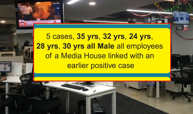 ଭୁବନେଶ୍ୱର,୧୭।୭(ବ୍ୟୁରୋ): ରାଜଧାନୀରେ ଶୁକ୍ରବାର ଚିହ୍ନଟ ହୋଇଥିବା ୧୨୪ ନୂଆ ଆକ୍ରାନ୍ତଙ୍କ ମଧ୍ୟରେ ୫ଜଣ ଗଣମାଧ୍ୟମ ସଂସ୍ଥାର କର୍ମଚାରୀ ଅଛନ୍ତି। ସେମାନଙ୍କର ବୟସ ଯଥାକ୍ରମେ ୩୫, ୩୨, ୨୪,୨୮, ୩୦ ବର୍ଷ ଏବଂ ସମସ୍ତେ ପୁରୁଷ ଥିବା ଭୁବନେଶ୍ୱର ମହାନଗର ନିଗମ(ବିଏମ୍ସି) ପକ୍ଷରୁ ସୂଚନା ଦିଆଯାଇଛି।