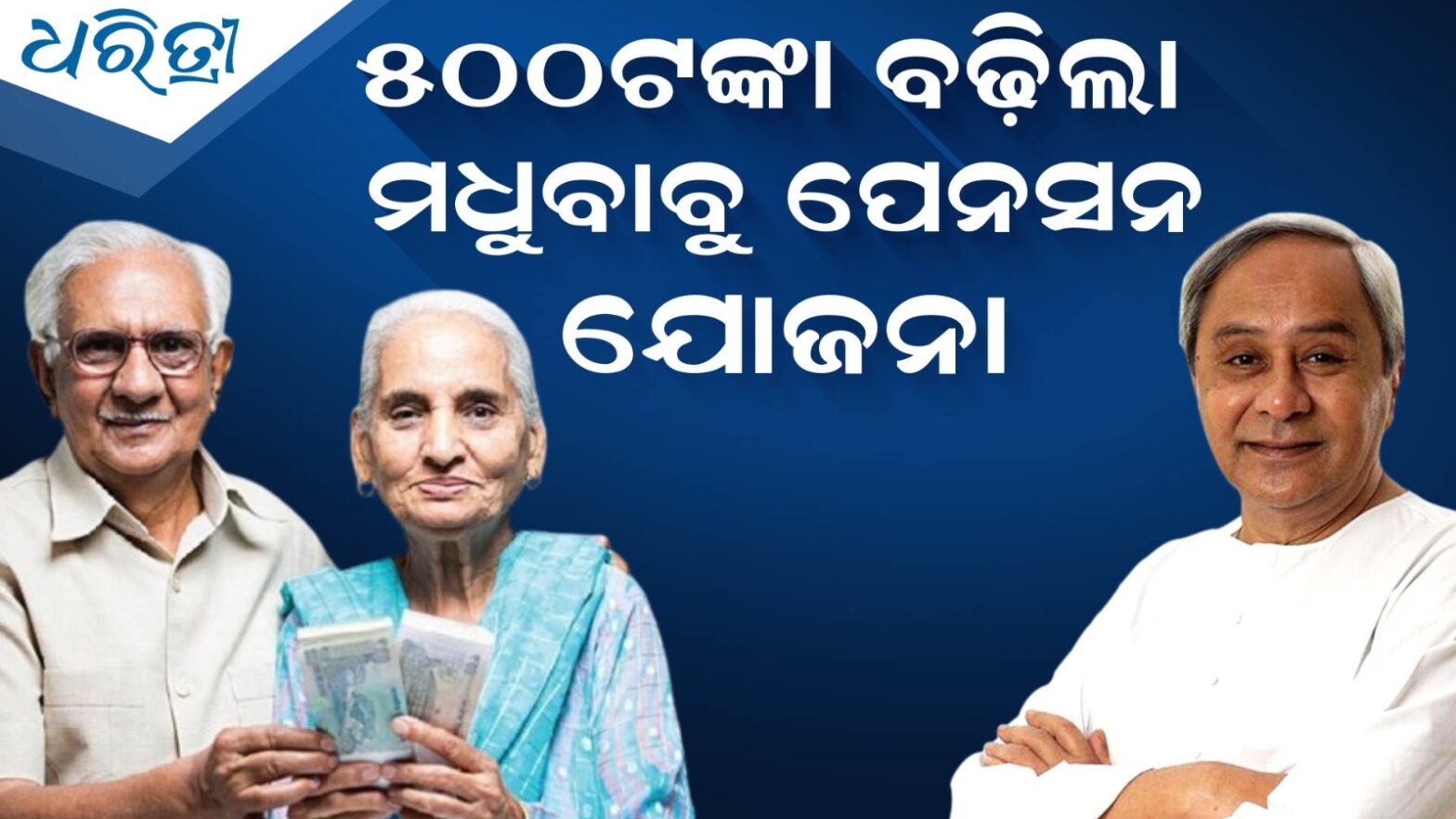 ଭୁବନେଶ୍ଵର,୧୦।୨: ମଧୁବାବୁ ପେନସନ ଯୋଜନାର ହିତାଧିକାରୀଙ୍କ ପାଇଁ ଖୁସିର ଖବର। ମୁଖ୍ୟମନ୍ତ୍ରୀ ନବୀନ ପଟ୍ଟନାୟକ ଏହି ଯୋଜନାରେ ମାସିକ ପେନସନ ରାଶିରେ ୫୦୦ ଟଙ୍କା ବୃଦ୍ଧି ଘୋଷଣା କରିଛନ୍ତି। ଏଣିକି ମଧୁବାବୁ ପେନସନ ଯୋଜନାରେ ହିତାଧିକାରୀମାନେ ସର୍ବନିମ୍ନ ପେନସନ ରାଶି ୧୦୦୦ ଟଙ୍କା ପାଇବେ। ଏହି ବର୍ଦ୍ଧିତ ପେନସନ ହିତାଧିକାରୀମାନେ ଚଳିତ ଫେବୃଆରୀ ମାସରୁ ପାଇବେ।
