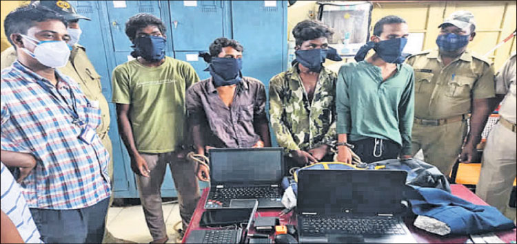 ସୂଚନା ଅନୁଯାୟୀ, ବୁଧବାର ରାତିରେ ଜଣେ ଯାତ୍ରୀ ସନ୍ତ୍ରାଗାଛି-ଚେନ୍ନାଇ ଟ୍ରେନ୍ରେ ଯାଉଥିଲେ। ଭୁବନେଶ୍ୱର ଷ୍ଟେଶନରେ ଟ୍ରେନ୍ ଛାଡୁଥିବାବେଳେ କେତେଜଣ ଅଭିଯୁକ୍ତ ତାଙ୍କର ଏକ ବ୍ୟାଗ୍ ନେଇ ପଳାଇଥିଲେ। ସେଥିରେ ଏକ ଲାପଟପ, ହାର୍ଡ଼ଡ଼ିସ୍କ ଓ ମୋବାଇଲ ଫୋନ୍ ରହିଥିଲା। ଏନେଇ ବ୍ୟକ୍ତି ଜଣକ ଜିଆର୍ପି ଥାନାରେ ଅଭିଯୋଗ କରିଥିଲେ। ଏହାପରେ ମିଳିତ ଟିମ୍ ଗଠନ କରାଯାଇ ତଦନ୍ତ ଆରମ୍ଭ ହେବା ସହ ଷ୍ଟେଶନଠାରୁ ୨ କିମି ଅଞ୍ଚଳ ମଧ୍ୟରେ ଲୁଟେରାଙ୍କ ଉପରେ ନଜର ରଖାଯାଇଥିଲା। ଗୁରୁବାର ଷ୍ଟେଶନ ନିକଟ ମୋଚିସାହି ଟ୍ରେନ୍ ଟ୍ରାକ୍ ନିକଟ ପୋଲତଳ ଅନ୍ଧାରିଆ ସ୍ଥାନରେ କେତେଜଣ ବ୍ୟକ୍ତି ବସି କିଛି ଯୋଜନା କରୁଥିବା ପୋଲିସକୁ ଖବର ମିଳିବା ପରେ ତୁରନ୍ତ ସେଠାରେ ଚଢ଼ାଉ କରାଯାଇଥିଲା। ଅଭିଯୁକ୍ତଙ୍କୁ ଥାନାକୁ ଆଣି ପଚରାଉଚରା କରିବାରୁ ଲୁଟେରା ଗ୍ୟାଙ୍ଗ୍ ସମ୍ପର୍କରେ ଜଣାପଡିଥିଲା।