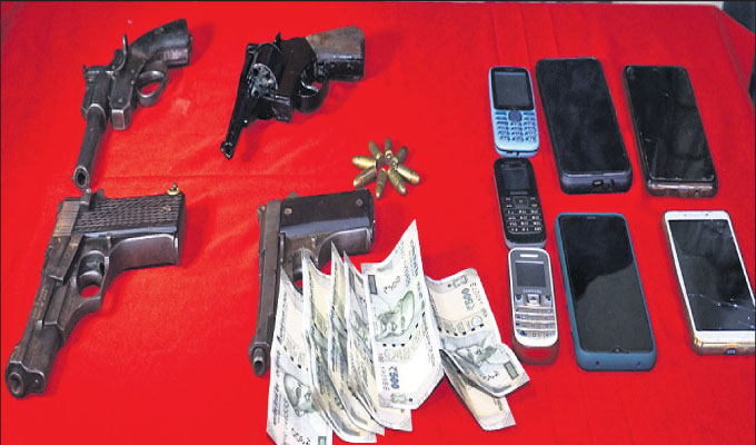 ଡିସିପି କହିଛନ୍ତି, ବୁଧବାର ରାତିରେ ଏହି ଘଟଣା ଘଟିଥିଲା। ଲୁଟ୍ର ଶିକାର ହୋଇଥିବା କୁନା ବିଶ୍ୱାଳ ମଧୁପାଟଣା ଥାନାରେ ଅଭିଯୋଗ କରିଥିଲେ ଯେ, ସନ୍ତୋଷ ନଗରଠାରେ ୬ଜଣ ଦୁର୍ବୃତ୍ତ ବନ୍ଧୁକ ମୁନରେ ତାଙ୍କଠାରୁ ନଗଦ ଟଙ୍କା ଓ ମୋବାଇଲ ଫୋନ୍ ଲୁଟ୍ କରି ଦୁଇଟି ବାଇକ୍ ଯୋଗେ ଫେରାର ହୋଇଯାଇଥିଲେ। ମଧୁପାଟଣା ଥାନା ଅଧିକାରୀ ତୁଷାରକାନ୍ତ ସେଠୀଙ୍କ ନେତୃତ୍ୱରେ ଏକ ପୋଲିସ ଟିମ୍ ତୁରନ୍ତ ଘଟଣାସ୍ଥଳରେ ପହଞ୍ଚି ତଦନ୍ତ କରିବା ସହ ୫ ଅଭିଯୁକ୍ତଙ୍କୁ ଗିରଫ କରିଥିଲେ। ତେବେ ଜଣେ ସେଠାରୁ ଫେରାର ହୋଇଯାଇଥିଲେ। ଅଭିଯୁକ୍ତମାନେ ପୂର୍ବରୁ ଡକାୟତି, ରାହାଜାନି ଓ ଲୁଟ୍ ପରି ସଙ୍ଗିନ ମାମଲାରେ ଗିରଫ ହୋଇ ଜାମିନରେ ଆସିଥିଲେ। ସେମାନେ ବାଙ୍କୀ, ସାଲେପୁର, ଖୁଣ୍ଟୁଣି, ନିଆଳି ଆଦି ଅଞ୍ଚଳରୁ ଲକ୍ଷ ଲକ୍ଷ ଟଙ୍କା ଲୁଟ୍ପାଟ୍ କରିଛନ୍ତି। ଏପରି କି ଏକବର୍ଷ ମଧ୍ୟରେ ସେମାନେ ଏକ କୋଟି ଟଙ୍କାର ଲୁଟ୍ କରିଥିବା ପୋଲିସ ପାଖରେ ସ୍ବୀକାର କରିଛନ୍ତି। ସେମାନଙ୍କଠାରୁ ଗୋଟିଏ ୯ ଏମ୍ଏମ୍ ଓ ୭.୬୫ ଏମ୍ଏମ୍ର ଦେଶୀ ପିସ୍ତଲ, ଦୁଇଟି ରିଭଲଭର, ୮ଟି ଜୀବନ୍ତ ଗୁଳି, ୬ଟି ମୋବାଇଲ୍ ଫୋନ୍, ଗୋଟିଏ ହରନେଟ୍ ମୋଟର ସାଇକେଲ(ଓଡି ୦୫ ୟୁ ୦୭୫୮), ଗୋଟିଏ ଆପାଚି ବାଇକ୍ (ଓଡି ୦୬ ଏନ୍ ୫୬୪୬) ସମେତ ୫,୫୦୦ ଟଙ୍କା ନଗଦ ଟଙ୍କା ଜବତ ହୋଇଛି। ଅଭିଯୁକ୍ତ ଜ୍ଞାନଙ୍କ ନାମରେ ମଧୁପାଟଣା ଥାନାରେ ୧୯ଟି, ସନ୍ତୁ ନାମରେ ନିଆଳି, ଓଳଟପୁର, ଜଗତ୍ସିଂହପୁର ଥାନାରେ ୧୨ଟି, ସୁଧିର ନାମରେ ମଧୁପାଟଣା, କ୍ୟାଣ୍ଟନମେଣ୍ଟ, ଚାଉଳିଆଗଞ୍ଜ, ମଙ୍ଗଳାବାଗ, ଚୌଦ୍ୱାର, ବାଲିକୁଦା ଥାନାରେ ୧୦ଟି ଏବଂ ରାଜା ନାମରେ ସଦର ଥାନାରେ ଗୋଟିଏ ସଙ୍ଗିନ ମାମଲା ଥିବା ଡିସିପି ସିଂ ସୂଚନା ଦେଇଛନ୍ତି।