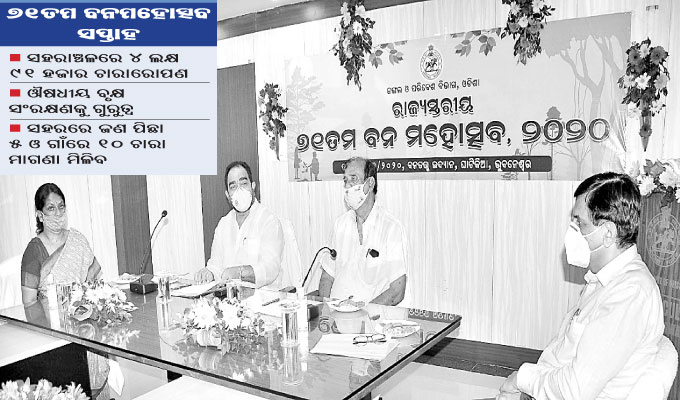 ପ୍ରଧାନ ମୁଖ୍ୟ ବନ ସଂରକ୍ଷକ ସନ୍ଦୀପ ତ୍ରିପାଠୀ କହିଥିଲେ, ଚଳିତବର୍ଷ ୧୩ କୋଟି ବୃକ୍ଷ ଚାରା ପ୍ରସ୍ତୁତ କରାଯାଇଛି। ସମଗ୍ର ରାଜ୍ୟର ୪୭ଟି ବନଖଣ୍ଡରେ ବିଭିନ୍ନ କିସମର ୫ କୋଟି ଆଞ୍ଚଳିକ ତଥା ଦେଶୀୟ ଚାରା ବଣ୍ଟାଯିବ। ସହରାଞ୍ଚଳ ଲୋକେ ସିଧାସଳଖ ଚାରା ଉତ୍ପାଦନ କେନ୍ଦ୍ର ଓ ବିତରଣ ଷ୍ଟଲ୍ରୁ ସର୍ବାଧିକ ୫ଟି ଏବଂ ଗ୍ରାମ ପଞ୍ଚାୟତରେ ଲୋକେ ଭ୍ରାମ୍ୟମାଣ ଚାରା ବିତରଣ ଯାନରୁ ୧୦ଟି ଚାରା ପାଇପାରିବେ। ଅନୁଷ୍ଠାନ କ୍ଷେତ୍ରରେ ସର୍ବାଧିକ ୧୦୦ଟି ଚାରା ଦିଆଯିବ। କାର୍ଯ୍ୟକ୍ରମରେ ବିଜ୍ଞାନ ଓ କାରିଗରୀ ମନ୍ତ୍ରୀ ଅଶୋକ ଚନ୍ଦ୍ର ପଣ୍ଡା, ଅତିରିକ୍ତ ମୁଖ୍ୟ ଶାସନ ସଚିବ ଡ. ମୋନା ଶର୍ମା ଉପସ୍ଥିତ ଥିଲେ। ଏହି ଅବସରରେ ଭ୍ରାମ୍ୟମାଣ ଚାରା ବିକ୍ରୟ ଭ୍ୟାନ୍ଗୁଡିକୁ ମନ୍ତ୍ରୀ ଆରୁଖ ସବୁଜ ପତାକା ଦେଖାଇ ଶୁଭାରମ୍ଭ କରିଥିଲେ।