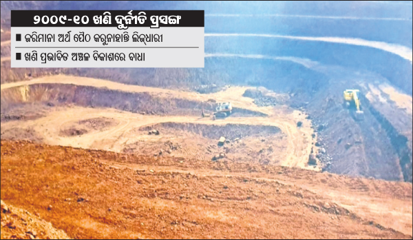 ଯୋଡ଼ା,୧୬ା୫(ଡି.ଏନ୍.ଏ.): ଓଡ଼ିଶାର ଖଣି ବହୁଳ କେନ୍ଦୁଝର ଜିଲା ଯୋଡ଼ା ଖଣି ମଣ୍ଡଳରେ ଖଣି ଦୁର୍ନୀତିକୁ ନେଇ ୨୦୦୯- ୧୦ରେ ଆଲୋଡ଼ନ ସୃଷ୍ଟି ହୋଇଥିଲା। ଦୁର୍ନୀତିର ତଦନ୍ତ କରିବା ପାଇଁ ଜଷ୍ଟିସ ଏମ୍.ବି. ଶାହା କମିଶନ ଏବଂ ପରେ ସୁପ୍ରିମ କୋର୍ଟଙ୍କ ଦ୍ୱାରା ଗଠିତ ସେଣ୍ଟ୍ରାଲ ଏମ୍ପାୱାର୍ଡ କମିଟି (ସିଇସି)ଯାଞ୍ଚକରି ସୁପ୍ରିମକୋର୍ଟଙ୍କୁ ରିପୋର୍ଟ ଦେଇଥିଲେ। ଉକ୍ତ ମଣ୍ଡଳରେ ଖଣି ଉପରେ ଖଣି ଖନନରେ ଅନିୟମିତତା ଥିବା ହେତୁ କୋର୍ଟ ଜରିମାନା କରିଥିଲେ। ମାତ୍ର ଆଜି ପର୍ଯ୍ୟନ୍ତ ଲିଜ୍ଧାରୀମାନେ ୬ ହଜାର କୋଟିରୁ ଊର୍ଦ୍ଧ୍ୱ ଜରିମାନା ଟଙ୍କା ପଇଠ କରିନାହାନ୍ତି। ଫଳରେ ଓଡ଼ିଶା ମାଇନିଂ ବିୟରିଂ ଡେଭଲପମେଣ୍ଟ କର୍ପୋରେଶନ (ଓଏମ୍ବିଏଡିସି) ଅର୍ଥରେ ହେଉଥିବା ଖଣି ପ୍ରଭାବିତ ଅଞ୍ଚଳର ବିକାଶରେ ବାଧା ଉପୁଜୁଛି।