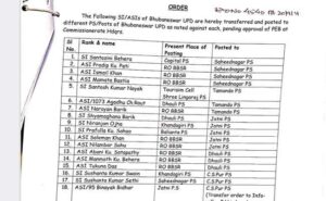 ଭୁବନେଶ୍ୱର,୨୧।୯(ବ୍ୟୁରୋ): ଭୁବନେଶ୍ୱରର ବିଭିନ୍ନ ଥାନାର ୬୦ଜଣ ଏସ୍ଆଇ ଏବଂ ଏଏସ୍ଆଇମାନଙ୍କ ମଧ୍ୟରେ ଅଦଳବଦଳ କରାଯାଇଛି। କ୍ୟାପିଟାଲ ଥାନାରୁ ଏସ୍ଆଇ ସନ୍ତୋଷିନୀ ବେହେରା ସହିଦନଗର ଯାଇଥିବା ବେଳେ ଲିଙ୍ଗରାଜ ଥାନାରୁ ଏସ୍ଆଇ ସନ୍ତୋଷ ନାୟକ ତମାଣ୍ଡୋ ଯାଇଛନ୍ତି। ସେହିଭଳି ବାଲିଅନ୍ତାରୁ ଏସ୍ଆଇ ପ୍ରଫୁଲ ସାହୁ ଜଟଣୀ ଯାଇଥିବା ବେଳେ ଖଣ୍ଡଗିରିରୁ ନିରଞ୍ଜନ ଓଝାଙ୍କୁ ଜଟଣୀ ପଠାଯାଇଛି। ତେବେ ଆଉ କେଉଁମାନେ କେଉଁସ୍ଥାନକୁ ଗଲେ ତାର ତାଲିକା ନିମ୍ନରେ ଦିଆଯାଇଛି। ଦେଖିନିଅନ୍ତୁ…