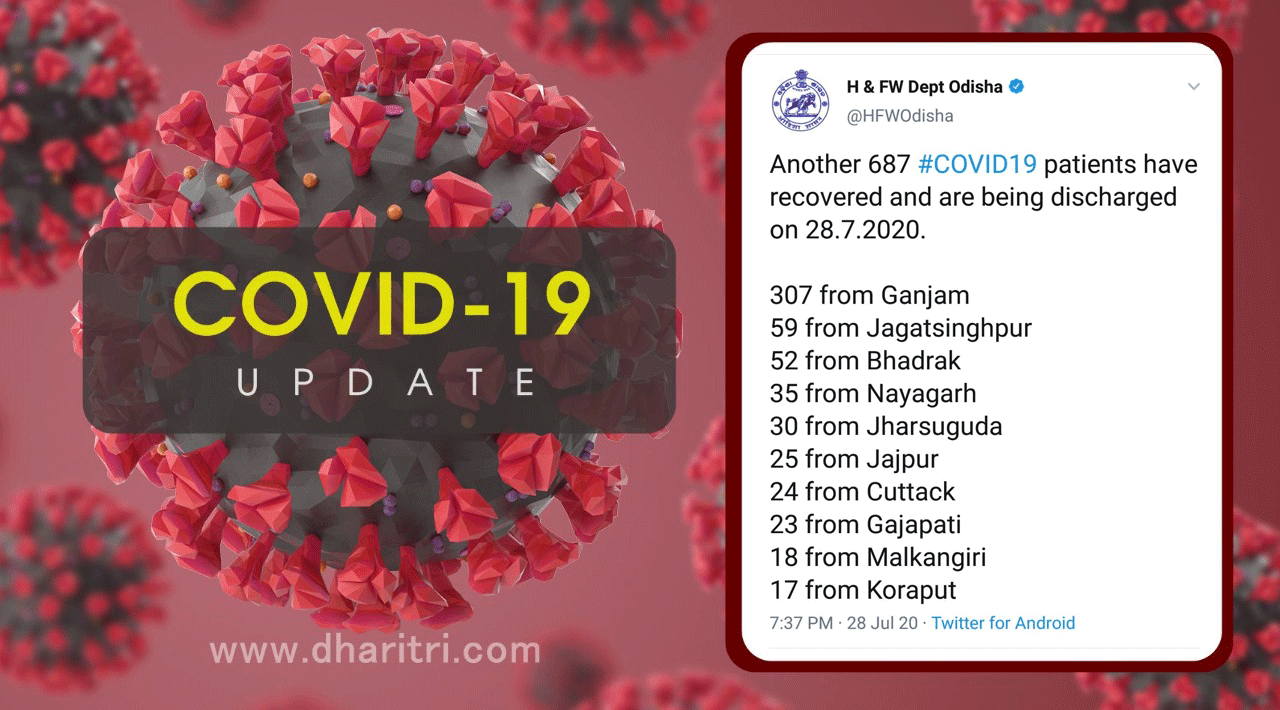 ଭୁବନେଶ୍ୱର,୯୨୮।୭(ବ୍ୟୁରୋ): ରାଜ୍ୟରେ ଆଉ ୬୮୭ କରୋନା ଆକ୍ରାନ୍ତ ସୁସ୍ଥ ହୋଇଛନ୍ତି। ସେଥିରୁ ସର୍ବାଧିକ ୩୦୭ଜଣ ଗଞ୍ଜାମର ଅଛନ୍ତି। ଏହାଛଡ଼ା ଜଗତସିଂହପୁରରୁ ୫୯, ଭଦ୍ରକରୁ ୫୨, ନୟାଗଡ଼ରୁ ୩୫, ଝାରସୁଗୁଡ଼ାରୁ ୩୦, ଯାଜପୁରରୁ ୨୫, କଟକରୁ ୨୪, ଗଜପତିରୁ ୨୩, ମାଲକାନଗିରିରୁ ୧୮, କୋରାପୁଟରୁ ୧୭, କନ୍ଧମାଳରୁ ୧୬, କେନ୍ଦୁଝରରୁ ୧୪, ବରଗଡ଼ରୁ ୧୨, ବାଲେଶ୍ୱର-କେନ୍ଦ୍ରାପଡ଼ା-ସମ୍ବଲପୁରରୁ ୧୧, ରାୟଗଡ଼ାରୁ ୧୦, ଅନୁଗୋଳରୁ ୫, ନବରଙ୍ଗପୁରରୁ ୩, କଳାହାଣ୍ଡିରୁ ୨, ବଲାଙ୍ଗୀର ଏବଂ ସୁନ୍ଦରଗଡ଼ରୁ ଜଣେ ଲେଖାଏ ଅଛନ୍ତି। ଏନେଇ ସ୍ବାସ୍ଥ୍ୟ ଓ ପରିବାର କଲ୍ୟାଣ ବିଭାଗ ପକ୍ଷରୁ ଟୁଇଟ କରି ସୂଚନା ଦିଆଯାଇଛି। ଏହାକୁ ମିାଶି ରାଜ୍ୟରେ ମୋଟ ଆରୋଗ୍ୟ ସଂଖ୍ୟା ୧୮,୦୬୦ରେ ପହଞ୍ଚିଥିବା ବିଭାଗ ପକ୍ଷରୁ କୁହାଯାଇଛି।