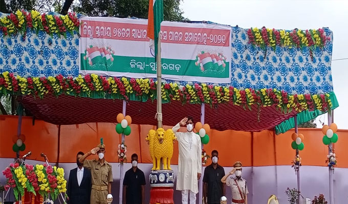 ସୁନ୍ଦରଗଡ଼ ଅଫିସ,୧୫।୮: ସୁନ୍ଦରଗଡ଼ରେ ଜିଲାସ୍ତରୀୟ ୭୫ତମ ସ୍ବାଧୀନତା ଦିବସ ପାଳିତ ହୋଇଯାଇଛି। ଶଙ୍କରାସ୍ଥିତ ରିଜର୍ଭ ପୋଲିସ ପଡ଼ିଆରେ ଆୟୋଜିତ ଏହି ସମାରୋହରେ ଉଚ୍ଚଶିକ୍ଷା ମନ୍ତ୍ରୀ ଅରୁଣ କୁମାର ସାହୁ ମୁଖ୍ୟ ଅତିଥି ଭାବେ ଯୋଗଦେଇ ପତାକା ଉତ୍ତୋଳନ କରିଥିଲେ। ପରେ ଆୟୋଜିତ ପରେଡରେ ଅଭିଭାଦନ ଗ୍ରହଣ କରିଥିଲେ।