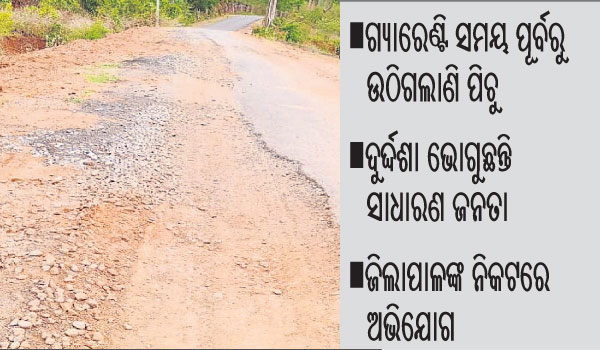 ବଇଣ୍ଡା, ୨୧।୫(ଡି.ଏନ.ଏ.) ଗ୍ରାମାଞ୍ଚଳବାସୀଙ୍କ ଗମନାଗମନ ସୁଗମ କରିବାକୁ ପ୍ରାୟ ୮କୋଟି ଟଙ୍କାରେ ନିର୍ମାଣ କରାଯାଇଥିଲା ରାସ୍ତା। ଏହାର ଗ୍ୟାରେଣ୍ଟି ଅବଧି ସରିନାହିଁ, ଅଥଚ ପିଚୁ ଉଠି ଶୋଚନୀୟ ହୋଇପଡ଼ିଛି ସଡ଼କ। ଅନୁଗୋଳ ଜିଲା ଆଠମଲ୍ଲିକ ବ୍ଲକ କନ୍ତପଡ଼ା ପଞ୍ଚାୟତରୁ ମଇମୁରା ପଞ୍ଚାୟତକୁ ସଂଯୋଗ କରୁଥିବା ପକ୍କାରାସ୍ତାର ଏଭଳି ଦୁରାବସ୍ଥା ସ୍ଥାନୀୟ ଅଞ୍ଚଳବାସୀଙ୍କ ମଧ୍ୟରେ ତୀବ୍ର ଅସନ୍ତୋଷ ସୃଷ୍ଟି କରିଛି। ଏ ନେଇ ବିପ୍ରଡିହ ଗ୍ରାମବାସୀ ଜିଲାପାଳଙ୍କ ଦ୍ୱାରସ୍ଥ ହୋଇ ଅଭିଯୋଗ କରିଛନ୍ତି। ଅନ୍ୟପଟେ ଏତେ ଟଙ୍କା ବ୍ୟୟରେ ନିର୍ମିତ ରାସ୍ତା ମାତ୍ର ୨ବର୍ଷ ନ ତିଷ୍ଠିବା, ଗ୍ୟାରେଣ୍ଟି ସମୟ ଥାଇ ଠିକାସଂସ୍ଥା ଏହାର ମରାମତି ନ କରିବା ବିଭାଗୀୟ ଅଧିକାରୀ କାର୍ଯ୍ୟଶୈଳୀ ପ୍ରତି ପ୍ରଶ୍ନବାଚୀ ସୃଷ୍ଟି କରିଛି।
