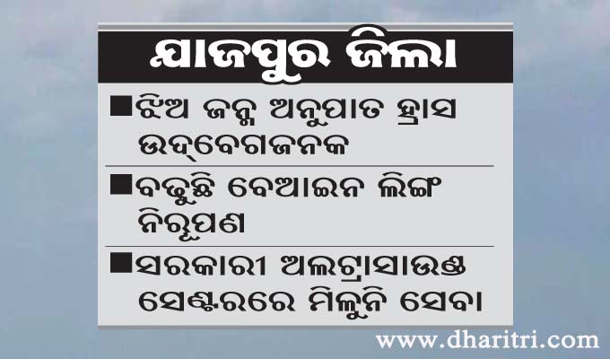 ଜିଲା ସଦର ଡାକ୍ତରଖାନାରେ ଅଲଟ୍ରାସାଉଣ୍ଡ ମେଶିନ ଥାଇ ସୁଦ୍ଧା ତାକୁ ଉପଯୁକ୍ତ ଭାବେ କାର୍ଯ୍ୟକାରୀ ନ କରି ବେସରକାରୀ କେନ୍ଦ୍ରଗୁଡିକୁ ପରୋକ୍ଷରେ ପ୍ରୋସତ୍ାହନ ଯୋଗାଇ ଦିଆଯାଉଛି। ଜିଲା ପ୍ରଶାସନ ପକ୍ଷରୁ ପିଏନ୍ଡିଟି(ବେଆଇନ ଲିଙ୍ଗ ନିରୂପଣ ଆଇନ) ପରାମର୍ଶଦାତା କମିଟିରେ ଏହାର ନିରାକରଣ ପାଇଁ ପ୍ରସ୍ତୁତି ବୈଠକ ହେଉଥିଲେ ହେଁ କିଛି ସୁଫଳ ମିଳି ପାରି ନ ଥିବାରୁ ଆଗକୁ ପରିସ୍ଥିତି ଭୟାବହ ହେବ ବୋଲି ମତପ୍ରକାଶ ପାଇଛି। ଉଭୟ ରାଜ୍ୟ ଓ କେନ୍ଦ୍ର ସରକାର ଉଚ୍ଚତର ଚିକିସତ୍ା ସହ ଗର୍ଭବତୀ ଓ ପ୍ରସୂତି ମହିଳା ମୃତ୍ୟୁହାର କମାଇବା ଉଦ୍ଦେଶ୍ୟରେ ଜିଲାର ବିଭିନ୍ନ ଡାକ୍ତରଖାନାକୁ ଯୋଗାଉଥିବା ମେଶିନ ରୋଗୀସେବାରେ ଉପଯୁକ୍ତ ଭାବେ ବ୍ୟବହୃତ ହେଉନାହିଁ। ଜିଲାର ଯାଜପୁର ଟାଉନ, ଯାଜପୁର ରୋଡ, କାଳିଆପାଣି, ସୁକିନ୍ଦା, ଜାରକା ଆଦି ସ୍ଥାନରେ ପ୍ରାୟ ୨୭ଟି ବେସରକାରୀ ଅଲଟ୍ରାସାଉଣ୍ଡ ପରୀକ୍ଷା କରିବା ପାଇଁ ଅନୁମତି ଦିଆଯାଇଛି। ପ୍ରତି ଅଲଟ୍ରାସାଉଣ୍ଡ କେନ୍ଦ୍ରରେ ଜଣେ ଲେଖାଏଁ ରେଡିଓଲୋଜି କିମ୍ବା ସୋନୋଗ୍ରାଫର ରହିବାକୁ ନିୟମ ରହିଛି। ମାତ୍ର ଜିଲାର କେତେକ ବେସରକାରୀ ଅଲଟ୍ରାସାଉଣ୍ଡ କେନ୍ଦ୍ରରେ ଉକ୍ତ ନିୟମ ପାଳନ କରାଯାଉ ନ ଥିବା ଅଭିଯୋଗ ହୋଇଛି। ଏହି କେନ୍ଦ୍ରଗୁଡିକରେ ରେଡିଓଲୋଜିଷ୍ଟ କିମ୍ବା ସୋନୋଗ୍ରାଫର ନିଯୁକ୍ତି କରା ନ ଯାଇ ଅନଭିଜ୍ଞ ତଥା ଅଣକୁଶଳୀ ଲୋକଙ୍କ ଦ୍ୱାରା ଅଲଟ୍ରାସାଉଣ୍ଡ କରାଯାଉଛି। ଫଳରେ ଅଧିକାଂଶ ସମୟରେ ରୋଗୀଙ୍କୁ ତ୍ରୁଟିପୂର୍ଣ୍ଣ ରିପୋର୍ଟ ମିଳୁଥିବା ଅଭିଯୋଗ ହୋଇଛି। ଏହି କେନ୍ଦ୍ରଗୁଡିକ ସେବା ବଦଳରେ ବ୍ୟବସାୟକୁ ଅଧିକ ଗୁରୁତ୍ୱ ଦେଉଛନ୍ତି। ଅଲଟ୍ରାସାଉଣ୍ଡ ପରୀକ୍ଷାରେ ଜଣେ ରୋଗୀଙ୍କଠାରୁ ୮୦୦ ଟଙ୍କା ପର୍ଯ୍ୟନ୍ତ ନେଉଛନ୍ତି। ଏହି ସବୁର ତଦନ୍ତ କରିବା ପାଇଁ ଜିଲାରେ ଜିଲା ପରାମର୍ଶ କମିଟି (ଡିଏସି) ଗଠନ କରାଯାଇଛି। ଗଠିତ କମିଟି ପକ୍ଷରୁ ଅଲଟ୍ରାସାଉଣ୍ଡ କେନ୍ଦ୍ରଗୁଡିକୁ ତଦନ୍ତ କରାଯାଉଛି ସତ ହେଲେ କୌଣସି କାର୍ଯ୍ୟାନୁଷ୍ଠାନ ଗ୍ରହଣ କରାଯାଉ ନାହିଁ। ଫଳରେ ସେହି କେନ୍ଦ୍ରଗୁଡିକରେ ଲିଙ୍ଗ ନିରୂପଣ କରି ଅବାଧରେ ଗର୍ଭପାତ ଓ କନ୍ୟାଭୃଣ ହତ୍ୟା କରୁଥିବା ଅଭିଯୋଗ ହୋଇଛି। ଯାଜପୁରଟାଉନ ଓ ଯାଜପୁର ରୋଡରେ ଥିବା କେନ୍ଦ୍ରଗୁଡିକରେ ଏଭଳି ବ୍ୟବସାୟ ଚାଲିଥିବା ବିଶ୍ୱସ୍ତ ସୂତ୍ରରୁ ଜିଣାପଡିଛି। ଏପରି କି ଜିଲା ତଥା ଜିଲା ବାହାରୁ ଲୋକେ ଆସି ଏଠାରେ ଲିଙ୍ଗ ନିରୂପଣ କରୁଥିବା ସାଧାରଣରେ ଚର୍ଚ୍ଚା ହେଉଛି। ଏଥିଯୋଗୁ ଜିଲାରେ ଝିଅ ଜନ୍ମହାର ହ୍ରାସ ବର୍ଷକୁ ବର୍ଷ ଜଟିଳ ହେବାରେ ଲାଗିଛି। ଅଲଟ୍ରାସାଉଣ୍ଡ ମେଶିନ ଗର୍ଭବତୀଙ୍କ ଗର୍ଭାଶୟର ପରିସ୍ଥିତି ଓ ଗର୍ଭାଶୟରେ ଥିବା ଶିଶୁର ଅବସ୍ଥା ସମ୍ପର୍କରେ ସୂଚନା ପ୍ରଦାନ କରିଥାଏ। ରାଜ୍ୟ ସରକାର ମାଗଣାରେ ଗର୍ଭବତୀଙ୍କ ଅଲଟ୍ରାସାଉଣ୍ଡ କରି ପରୀକ୍ଷା ରିପୋର୍ଟ ଦେବାକୁ କଡା ନିର୍ଦ୍ଦେଶ ଜାରି କରିଛନ୍ତି। କିନ୍ତୁ ବିଭାଗୀୟ ଅବହେଳା କାରଣରୁ ଜିଲା ସଦର ଡାକ୍ତରଖାନାରେ ଅଲଟ୍ରାସାଉଣ୍ଡ ମେଶିନ ଥାଇ ସୁଦ୍ଧା ଜିଲାବାସୀ ବେସରକାରୀ ମେଶିନରେ ପରୀକ୍ଷା କରାଇ ଅଧିକ ଖର୍ଚ୍ଚାନ୍ତ ହେଉଛନ୍ତି। ଜିଲା ସ୍ବାସ୍ଥ୍ୟ ସମିତି, ସ୍ବାସ୍ଥ୍ୟ ବିଭାଗ ଓ ପ୍ରଶାସନ ପକ୍ଷରୁ ବିଭିନ୍ନ ସମୟରେ ଜିଲାରେ ସ୍ବାସ୍ଥ୍ୟ ସେବା ସମ୍ପର୍କିତ ସମୀକ୍ଷା ବୈଠକ ଅନୁଷ୍ଠିତ ହେଉଥିଲେ ମଧ୍ୟ ଏଭଳି ପ୍ରମୁଖ ସ