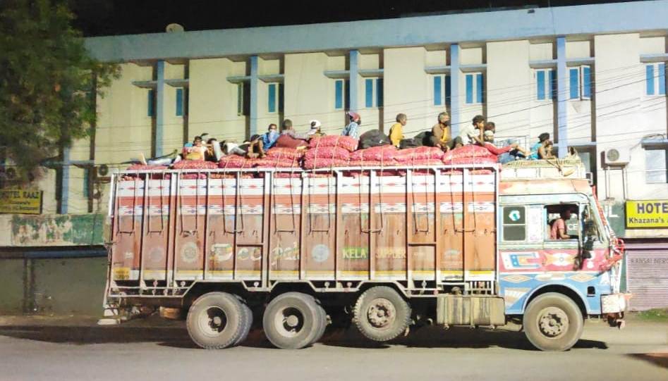 ଆଳୁ ବୋଝେଇ ଟ୍ରକ ଉପରେ ବହୁ ଲୋକ ବସି ଯାଉଛନ୍ତି