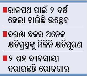 ୨ ବର୍ଷ ତଳେ ଦୋକାନ ଭାଙ୍ଗିଦିଆଯାଇଥିଲା। ରାଜପଥ କାମ ସରିଥିଲେ ନୂଆ ଦୋକାନ ଦେଇଥାନ୍ତି। କିନ୍ତୁ ନିର୍ମାଣ କାମରେ ବିଳମ୍ବ ହେଉଥିବାରୁ ବ୍ୟବସାୟ ସହ ରୋଜଗାର ସମ୍ପୂର୍ଣ୍ଣ ବନ୍ଦ ହୋଇଯାଇଛି। କ୍ଷତିଗ୍ରସ୍ତ ବ୍ୟବସାୟୀମାନଙ୍କୁ କ୍ଷତିପୂରଣ ଦିଆଯାଉ।