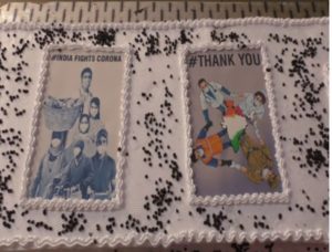 କେକ୍ଟି କାଟିବା ସମୟରେ ସୋସିଆଲ ଡିଷ୍ଟାନସିଂକୁ ଗୁରୁତ୍ୱ ଦିଆଯିବା ସହ ଏଥିରେ ୭ କରୋନା ଯୋଦ୍ଧା ମଧ୍ୟ ଯୋଗ ଦେଇଥିଲେ । କେକ୍ରେ ଯେଉଁ ଚିତ୍ର ଥିଲା ସେଥିରେ ଗଣମାଧ୍ୟମ, ଡାକ୍ତର, ସ୍ୱାସ୍ଥ୍ୟକର୍ମୀ, ପୋଲିସ, ପ୍ଲାଜମା ଡୋନର ଆଦିଙ୍କ ଫଟୋ ଦେଖିବାକୁ ମିଳିଛି । ଏହାଦ୍ୱାରା ଆମେ କରୋନା ଯୁଦ୍ଧରେ ବିଜୟୀ ହେବା ବୋଲି ବର୍ତ୍ତା ଯାଇଥିବା କହିଛନ୍ତି ଏହାର ଆୟୋଜକ ନୀତିନ ପଟେଲ ।