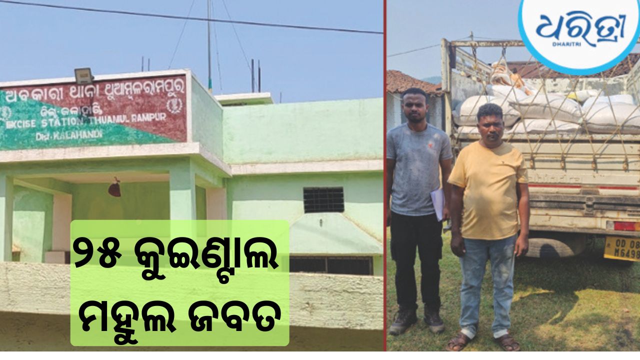 ଥୁଆମୂଳ ରାମପୁରରେ ଅବକାରୀ ବିଭାଗର ଚଢ଼ାଉ: ୨୫ କୁଇଣ୍ଟାଲ ମହୁଲ ସହ ପିକଅପ୍ ଭ୍ୟାନ ଜବତ