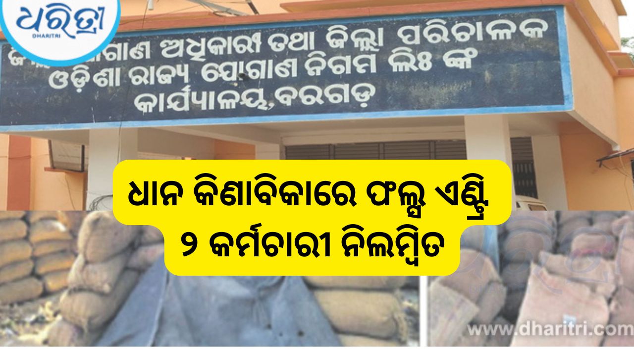 ଧରିତ୍ରୀ ପ୍ରଭାବ : ୫ ମିନିଟ୍ ବ୍ୟବଧାନରେ ଗୋଟିଏ ଗାଡ଼ିରେ ୨ଟି ମିଲକୁ ଧାନଯିବା ଘଟଣା, ୨ କର୍ମଚାରୀ ନିଲମ୍ବିତ