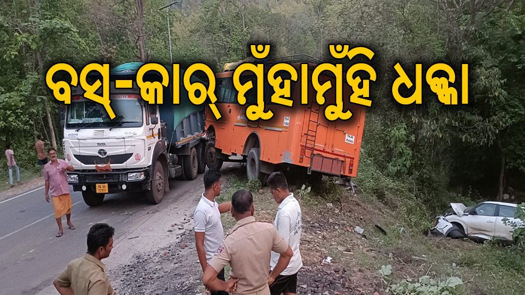 ସ୍ତ୍ରୀ-ପୁଅଙ୍କ ସହ କାର୍ରେ ଯାଉଥିଲେ, ସାମ୍ନାରୁ ବସ୍ ସହ ହେଲା ଧକ୍କା, ଘଟଣାସ୍ଥଳରେ…