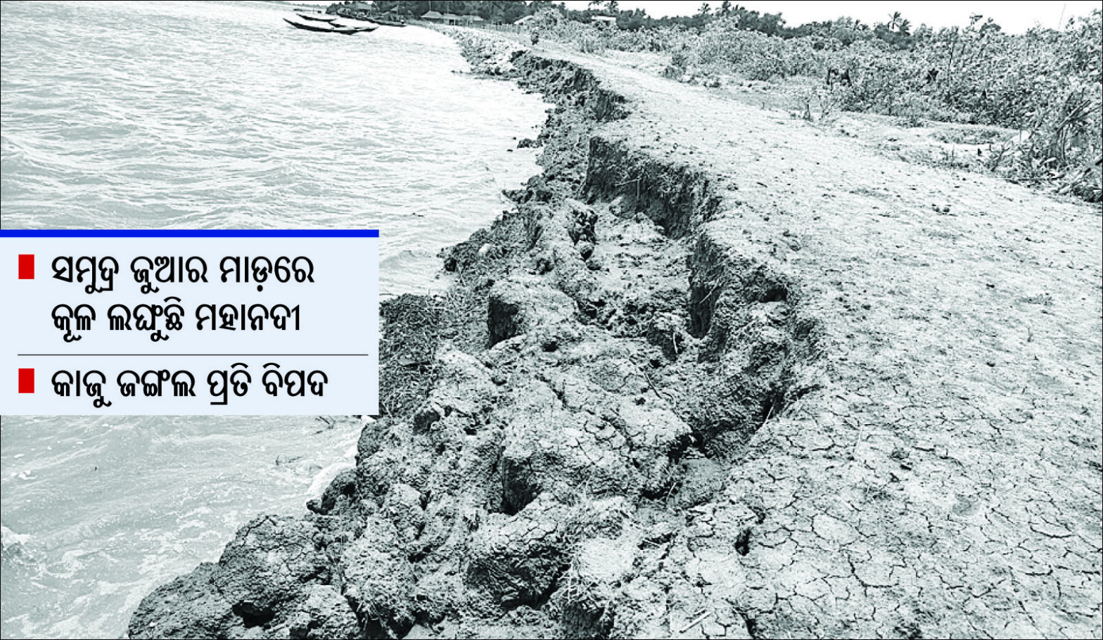 ମହାକାଳପଡ଼ା,୧୬ା୭(ଡି.ଏନ୍.ଏ.):କେନ୍ଦ୍ରାପଡ଼ା ଜିଲା ମହାକାଳପଡା ବ୍ଲକ ଅଧୀନ ରାମନଗର ପଞ୍ଚାୟତ ବାହାକୁଦ ଗ୍ରାମ ସଂଲଗ୍ନ ମହାନଦୀର ସାମୁଦ୍ରିକ ଜୁଆର କୂଳ ଲଙ୍ଘିବାରେ ଲାଗିଛି। ଲୁଣା ଘେରିବନ୍ଧ, ଚଳିତବର୍ଷ ବାହାକୁଦ-ମହାନଦୀ ଫେରି ଘାଟଠାରୁ ୧ କିମି କାଜୁ ଜଙ୍ଗଲକୁ ଏକ ନୂତନ ବନ୍ଧ ନିର୍ମାଣ କାର୍ଯ୍ୟ ଆରମ୍ଭ ହୋଇଥିଲା। ତେବେ ସାମୁଦ୍ରିକ ଜୁଆର ମାଡ଼ରେ ୩୦ ମିଟର ମାଟିବନ୍ଧ ଅତଡ଼ା ଧସିଥିବା ଦେଖିବାକୁ ମିଳିଛି। ଏଠାରେ ୨୫୦ ହେକ୍ଟରରୁ ଅଧିକ କାଜୁ ଜଙ୍ଗଲ ରହିଛି। କେତେଜଣ ଲୋକ ଏହି କାଜୁ ଜଙ୍ଗଲକୁ ବେଆଇନ ଭାବେ ଦଖଲ କରିଥିବା କୁହାଯାଏ। ଆଗାମୀ ଦିନରେ ଏହି ମାଟିବନ୍ଧରେ ପଥର ସ୍ପର କରା ନ ଗଲେ ସମୁଦ୍ର ଜୁଆର ମାଡ଼ରେ ବନ୍ଧ ଭୁଶୁଡ଼ିଯିବା ସହ କାଜୁ ଜଙ୍ଗଲ ଧ୍ୱଂସ ପାଇବ ବୋଲି ସ୍ଥାନୀୟ ଲୋକମାନେ କହିଛନ୍ତି। ତେବେ ୧ କିମି ଦୂର ବନ୍ତନାଶି କନ୍ଧା ପର୍ଯ୍ୟନ୍ତ ମାଟି ଓ ପଥର ବନ୍ଧ ନିର୍ମାଣ ପାଇଁ ଦାବି ଜୋର ଧରିଛି।