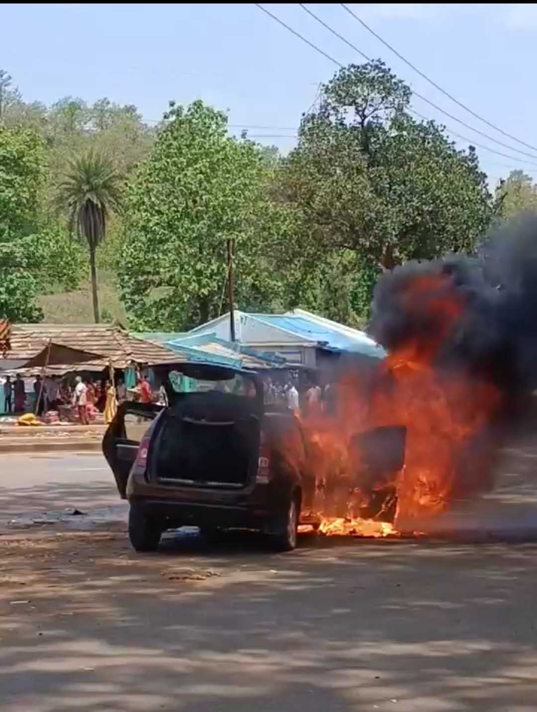 କେନ୍ଦୁଝର,୨୩।୫ (ସ୍ବ.ପ୍ର): କାଞ୍ଜିିପାଣି ଥାନା ନିକଟରେ ଏନ୍ଏଚ୍ ୪୯ରେ ହଠାତ୍ ଏକ କାର୍ରେ ନିଆଁ ଲାଗିଯାଇଥିଲା। ନିଆଁ ଲାଗିଥିଲେ ମଧ୍ୟ କାର୍ରେ ଥିବା ୨ ଜଣ ଅଳ୍ପକେ ବର୍ତ୍ତି ଯାଇଛନ୍ତି। ଘାଟି ରାସ୍ତା ପୂର୍ବରୁ କାର୍ରୁ ଧୂଆଁ ବାହାରୁଥିବା ଦେଖି ସେମାନେ ଗାଡି ଅଟକାଇ ଓହ୍ଲାଇ ବାହାରକୁ ପଳାଇଯାଇଥିଲା। ପରେ ନିଆଁ ଲାଗି ହୁତୁ ହୁତୁ ହୋଇ ଜଳଥିଲା। ଘଟଣାସ୍ଥଳରେ ଲୋକଙ୍କ ଭିଡ ଜମିଥିଲା। ଗାଡି ଟି ସମ୍ପୂର୍ଣ୍ଣ ଜଳିଯାଇଛି। ଏପର୍ଯ୍ୟନ୍ତ ନିଆଁ ଲାଗିବାର କାରଣ ଜଣାପଡିନାହିଁ।