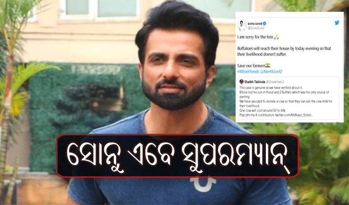ବିହାରରେ ବନ୍ୟାରେ ଫସି ରହିଥିବା ଭୋଳା ନିଜର ପୁଅ ଏବଂ ୨ଟି ମଇଁଷିକୁ ହରାଇଛନ୍ତି। ଜଣେ ମହିଳା ତାଙ୍କୁ ସହାୟତା କରିବା ପାଇଁ ଗୁହାରି କରିଥିଲେ। ସେ ଭୋଳାଙ୍କୁ ଏକ ଗାଈ ଦେବାକୁ ଚାହାନ୍ତି। ଏଥିପାର୍ଇ ୫୦ରୁ ୬୦ହଜାର ଟଙ୍କା ଆବଶ୍ୟକ ବୋଲି ସେ କହିଥିଲେ। ହେଲେ ଏହାଜାଣିବା ପରେ ସୋନୁ ତାଙ୍କୁ ମଇଁଷି ଦେବାକୁ ନିଶ୍ଚିତ କରିଛନ୍ତି। ଫଳରେ ସେମାନେ କ୍ଷୀର ବିକ୍ରି କରି ଜୀବନଜୀବିକା ଚଳାଇପାରିବେ। ସନ୍ଧ୍ୟା ସୁଦ୍ଧା ତାଙ୍କ ପାଖରେ ମଇଁଷି ପହଞ୍ଚିଯିବ ବୋଲି ସୋନୁ ଟୁଇଟ୍‌ କରି କହିଛନ୍ତି। ଏହା ଏବେ ଭାଇରାଲ ହେବାରେ ଲାଗିଛି। ତାଙ୍କୁ ବହୁତ ପ୍ରଶଂସା କରାଯାଉଛି।