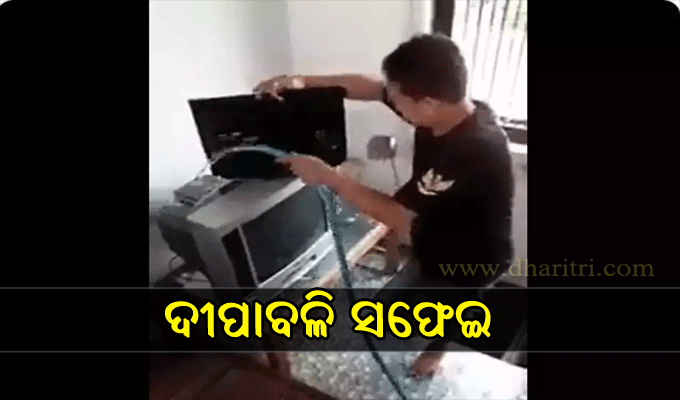 ସାରା ଦେଶରେ ଏବେ ଉତ୍ସବର ବାତାବରଣ। ଦଶହରା, ଗଜଲକ୍ଷ୍ମୀ ପୂଜା ପରେ ଏବେ ଲୋକେ ଦୀପାବଳି ଲାଗି ପ୍ରସ୍ତୁତି ଆରମ୍ଭ କରିଦେଲେଣି। କେହି କେହି ଘରକୁ ପରିଷ୍କାର ପରିଚ୍ଛନ୍ନ କରୁଥିବା ବେଳେ କେତେକ ଆଲୋକମାଳା ଏବଂ ବାଣ କ୍ରୟ ଉପରେ ଧ୍ୟାନ ଦେଉଛନ୍ତି। ଏହାକୁ ନେଇ ଏକ ମଜାଳିଆ ଭିଡିଓ ସୋସିଆଲ ମିଡିଆରେ ଭାଇରାଲ ହେଉଛି। ଭିଡିଓରେ ଜଣେ ବ୍ୟକ୍ତି ଘରର କୋଣଅନୁକୋଣକୁ ପାଣିରେ ଧୋଇ ସଫା କରୁଛନ୍ତି। ଧିରେ ଧିରେ ସେ ଘରେ ଥିବା ଟିଭି, କମ୍ପ୍ୟୁଟର ଆଦିକୁ ବି ପାଣିରେ ଧୋଇ ସଫା କରୁଛନ୍ତି। ଏହାକୁ ଦେଖି ଲୋକେ ହସ ସମ୍ଭାଳି ପାରୁ ନାହାନ୍ତି।