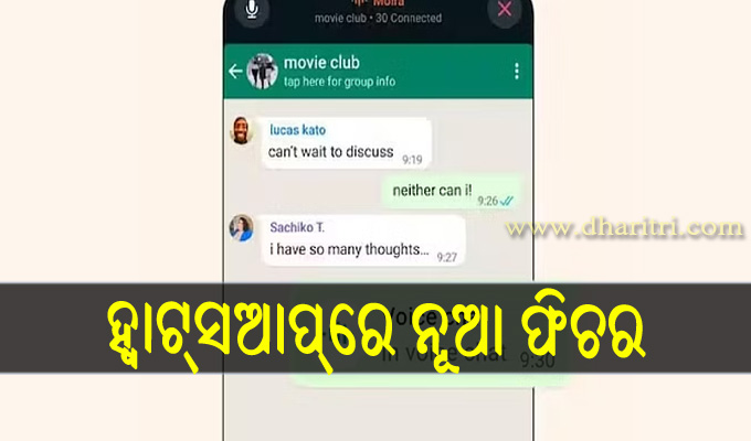 ନୂଆଦିଲ୍ଲୀ,୧୬।୧୧: ହ୍ବାଟ୍ସଆପ୍ ଏକ ନୂତନ ଫିଚର ପ୍ରକାଶ କରିଛି। ହ୍ବାଟ୍ସଆପ୍ ୟୁଜର୍ସଙ୍କ ପାଇଁ ମେଟା ଏକ ନୂତନ ଭଏସ ଚାଟ ଫିଚର ଲଞ୍ଚ କରିଛି, ଯାହା ଲାଇଭ ଭଏସ ଚାଟିଂ ସହିତ ସମାନ। ଯଦିଓ ଏହା ଗ୍ରୁପ ଭଏସ କଲ ଠାରୁ ସମ୍ପୂର୍ଣ୍ଣ ଭିନ୍ନ ହେବ। ଗ୍ରୁପ ଭଏସ ଚାଟ ଆରମ୍ଭ କରିବା ପରେ, ଗ୍ରୁପର ଅନ୍ୟ ସଦସ୍ୟମାନେ କୌଣସି ଅସୁବିଧାର ସମ୍ମୁଖୀନ ହେବେ ନାହିଁ। ଆପଣ ଭଏସ ଚାଟ ବିଷୟରେ ନୋଟିଫିକେଶନ୍ ପାଇବେ କିନ୍ତୁ ଏହା ସାଇଲେଣ୍ଟ ରହିବ।