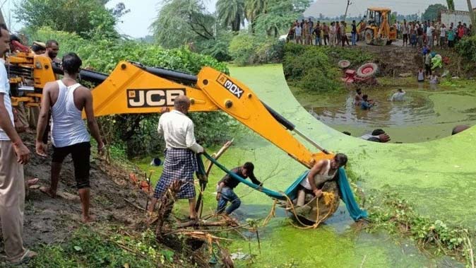 ଲକ୍ଷ୍ନୌ,୨୬।୯: ଲକ୍ଷ୍ନୌର ଇଟାଉଞ୍ଜାଠାରେ ଏକ ଅଭାବନୀୟ ଘଟଣା ଘଟିଛି। ଦ୍ରୁତ ଗତିରେ ଆସୁଥିବା ଟ୍ରକ୍ ଏକ ଟ୍ରାକ୍ଟରକୁ ଟକ୍କର ଦେଇଛି। ଫଳରେ ଏକ ପୋଖରୀରେ ଟ୍ରାକ୍ଟର-ଟ୍ରଲି ଖସି ପଡିଛି। ଦୁର୍ଘଟଣାରେ ଏପର୍ଯ୍ୟନ୍ତ ୧୦ ଜଣଙ୍କ ମୃତ୍ୟୁ ଘଟିଛି। ସ୍ଥାନୀୟ ଲୋକଙ୍କ ସହାୟତାରେ ପୋଲିସ ୩୫ ଜଣଙ୍କୁ ସୁରକ୍ଷିତ ଭାବେ ଉଦ୍ଧାର କରିଛି।