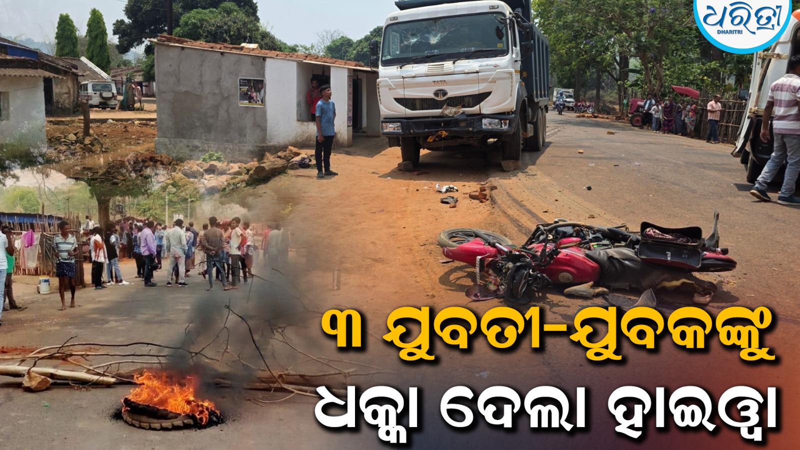ଥୁଆମୂଳ ରାମପୁର,୧୮ା୪(ଦୁର୍ଗା କୀର୍ତ୍ତି): କଳାହାଣ୍ଡି ଜିଲା ଥୁଆମୂଳ ରାମପୁର ଥାନା ଅନ୍ତର୍ଗତ ଶ୍ରୀମସ୍କା ଛକଠାରେ ଶନିବାର ଏକ ଭୟଙ୍କର ସଡ଼କ ଦୁର୍ଘଟଣା ଘଟିଯାଇଛି। ଗ୍ରାମ ଭିତରୁ ମୁଖ୍ୟ ରାସ୍ତାକୁ ବାଇକ୍ ଯୋଗେ ଆସୁଥିବା ଜଣେ ଯୁବକ ଏବଂ ୨ ଜଣ ଯୁବତୀଙ୍କୁ ଏକ ଦ୍ରୁତଗାମୀ ୧୦ ଚକିଆ ହାଇଓ୍ବା ସାମ୍ନାପଟୁ ଧକ୍କା ଦେବାରୁ ସେମାନେ ଗୁରୁତର ହୋଇଛନ୍ତି। ଏହି ଘଟଣାକୁ ନେଇ ଘଟଣାସ୍ଥଳରେ ଉତ୍ତେଜନା ପ୍ରକାଶ ପାଇବା ସହ ଦୀର୍ଘ ସମୟ ଧରି ରାସ୍ତା ଅବରୋଧ ହୋଇ ରହିଛି।