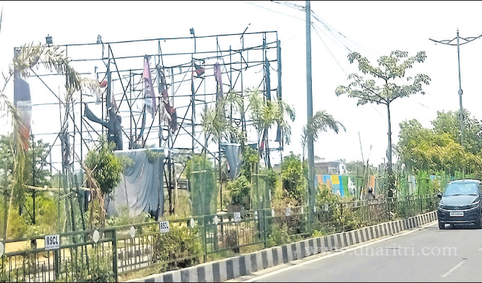 ଆର୍ଏମ୍ସିର ଅନୁମୋଦନ କ୍ରମେ ବିଭିନ୍ନ ସଂସ୍ଥା ତରଫରୁ ସହରର ସିଭିଲ ଟାଉନଶିପ୍, ଉଦିତନଗର, ପାନପୋଷ ଆଦି ଅଞ୍ଚଳ ରାସ୍ତାକଡ଼ରେ ନାମୀଦାମୀ କମ୍ପାନୀର ବିଜ୍ଞାପନ ଭିତ୍ତିକ ହୋର୍ଡିଂ ଲଗାଯାଇଛି। ଏଥିପାଇଁ ସଂସ୍ଥାଗୁଡିକ କମ୍ପାନୀମାନଙ୍କ ପାଖରୁ ନିର୍ଦ୍ଧାରିତ ରାଶି ନେବା ସହ କମିଶନ ଅର୍ଥ ଆର୍ଏମ୍ସିକୁ ପ୍ରଦାନ କରାଯାଉଛି। ତେବେ ଏହି ହୋର୍ଡିଂଗୁଡିକ ବିଭିନ୍ନ ସମୟରେ ଫାଡି ହୋଇ ପତାକା ସଦୃଶ ଝୁଲୁଛି। ଏହାକୁ ବଦଳାଯାଉ ନ ଥିବାରୁ ଉକ୍ତ ଚିରା ହୋର୍ଡିଂ ସ୍ମାର୍ଟସିଟି ସୌନ୍ଦର୍ଯ୍ୟ ବୃଦ୍ଧିରେ ପ୍ରତିବନ୍ଧକ ସାଜୁଛି। ସେହିପରି ବର୍ଷା ପବନ ହେଲେ ଉଡ଼ିଆସି ରାସ୍ତାରେ ଯାଉଥିବା ଯାନବାହନର ସମ୍ମୁଖ ଭାଗ ଗ୍ଲାସକୁ ଢାଙ୍କିଦେଉଛି। ଫଳରେ ଝଡପବନ ସମୟରେ ଯାନବାହନ ଦୁର୍ଘଟଣାର ସମ୍ମୁଖୀନ ହେଉଛନ୍ତି। ଏ ସମ୍ପର୍କରେ ଆର୍ଏମ୍ସିର ଉପ ପୌରଆୟୁକ୍ତ ଗୌରବ ପଧାନଙ୍କୁ ପଚାରିବାରୁ ତୁରନ୍ତ ଏ ନେଇ ସମ୍ପୃକ୍ତ ଠିକା ସଂସ୍ଥାଙ୍କୁ ଅବଗତ କରାଯିବା ସହ ଚିରାଫଟା ହୋର୍ଡିଂ ହଟାଯିବ ବୋଲି ସେ କହିଥିଲେ।