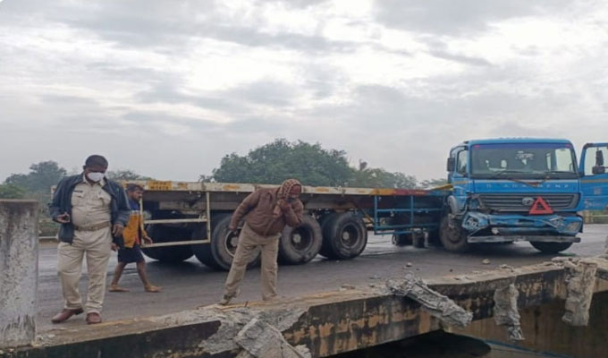 ୩୦। ୧୨,(ଡି.ଏନ୍.ଏ.): ଭଦ୍ରକ ଜିଲା ୬୦ ନଂ. ଜାତୀୟ ରାଜପଥର କୁଡ଼ିଆ ପୋଲ ଉପରେ ଗୁରୁବାର ସକାଳେ ଦୁର୍ଘଟଣା ଘଟିଛି। ଜଳେଶ୍ୱରରୁ ବାଲେଶ୍ୱର ଅଭିମୁଖେ ଯାଉଥିବା ଏକ ଟ୍ରଲର ଭାରସାମ୍ୟ ହରାଇ ପୋଲର ବାଡକୁ ଧକ୍କା ଦେବାରୁ ପୋଲର ବାଡ଼ ଭାଙ୍ଗି ଯାଇ ତଳକୁ ପଡ଼ିଯାଇଥିଲା। ତେବେ ତଳେଥିବା ଲୋକେ ଅଳ୍ପକେ ବର୍ତ୍ତି ଯାଇଛନ୍ତି।