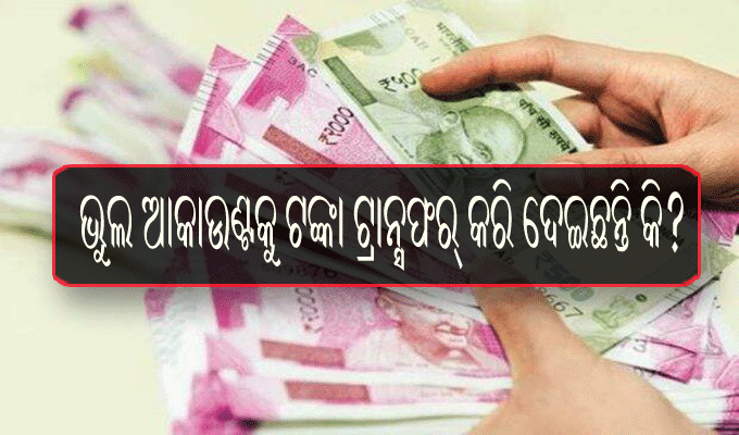 ନୂଆଦିଲ୍ଲୀ,୨୪।୭: ଆଜିକାଲି ବ୍ୟାଙ୍କ ନଚେତ ଏଟିଏମ୍ରେ ଟଙ୍କା ନେଣଦେଣ ସାଧାରଣ କଥା ପାଲଟିଲାଣି। ହେଲେ ବେଳେବେଳେ ଆମେ ଭୁଲବଶତଃ ନିଜ ଆକାଉଣ୍ଟ ବଦଳରେ ଅନ୍ୟ ଆକାଉଣ୍ଟରେ ଟଙ୍କା ଡିପୋଜିଟ୍ କରିଦେଇଥାଉ। ଅନ୍ଲାଇନ୍ ଏବଂ ଅଫ୍ଲାଇନ୍ ଟ୍ରାଞ୍ଜାକ୍ସନରେ ଏଭଳି ଅସୁବିଧା ଦେଖିବାକୁ ମିଳିଥାଏ। ଲୋକମାନେ ପଇସା ପଠାଇବାର କିଛି ସମୟ ପରେ ତାହା ଜାଣି ପାରନ୍ତି। ଏଭଳି ସ୍ଥିତିରେ କ’ଣ କରିବେ/ନ କରିବେ ଅନେକେ ଜାଣି ନ ଥାନ୍ତି। ସେହି ବିଷୟରେ ଜାଣି ରଖନ୍ତୁ।