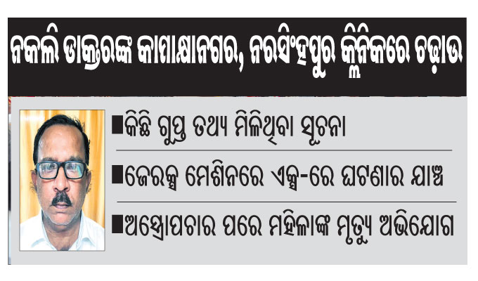 ଭୁବନେଶ୍ୱର,୨୭।୨(ବ୍ୟୁରୋ): ବିଭିନ୍ନ ରାଜ୍ୟର ୧୭ରୁ ଅଧିକ ମହିଳାଙ୍କୁ ବିବାହ କରି ଲୁଟିବା ସହ ଚାକିରି ଓ ନାମଲେଖା ଠକେଇ ଅଭିଯୋଗରେ ଗିରଫ ହୋଇଥିବା ନକଲି ଡାକ୍ତର ରମେଶ ଚନ୍ଦ୍ର ସ୍ବାଇଁଙ୍କୁ କମିଶନରେଟ ପୋଲିସ ଦ୍ୱିତୀୟଥର ରିମାଣ୍ଡରେ ଆଣି ମାରାଥନ ଜେରା କରୁଛି। ୩ଦିନିଆ ରିମାଣ୍ଡର ଶନିବାର ଥିଲା ଦ୍ୱିତୀୟ ଦିବସ। ପଚରାଉଚରାବେଳେ ତାଙ୍କଠାରୁ ଆଉ କିଛି ଅଧିକ ତଥ୍ୟ ପୋଲିସ ପାଇଛି। ଅନ୍ୟପକ୍ଷରେ ଡାକ୍ତରୀ ପାଠ ନ ପଢ଼ି କ୍ଲିନିକ୍ ଖୋଲି ରୋଗୀ ଚିକିତ୍ସା ଘଟଣାର ଅଧିକ ଖୋଳତାଡ଼ ଆରମ୍ଭ କରିଛି। ସ୍ବତନ୍ତ୍ର ତଦନ୍ତ ପାଇଁ ଗଠିତ ହୋଇଥିବା ମହିଳା ପୋଲିସ ଟିମ୍ ପୂର୍ବାହ୍ନରେ ରମେଶଙ୍କ ଢେଙ୍କାନାଳ ଜିଲା କାମାକ୍ଷାନଗରସ୍ଥିତ ଘରେ ଥିବା କ୍ଲିନିକ୍ରେ ଚଢ଼ାଉ କରିଥିଲା। ତେବେ କ୍ଲିନିକ୍ରେ ଥିବା ସେହି ଚର୍ଚ୍ଚିତ ଭୂତଳ ଗୁପ୍ତ କୋଠରି ଭିତରକୁ ପୋଲିସ ଯାଇ ତନ୍ନ ତନ୍ନ କରି ଯାଞ୍ଚ କରିଥିଲା। ଏଥିସହ ପରିଚାଳନା ଦାୟିତ୍ୱରେ ଥିବା କେୟାର ଟେକରଙ୍କୁ ବିଭିନ୍ନ ଦିଗକୁ ନେଇ ପଚରାଉଚରା କରି ତଥ୍ୟ ହାସଲ କରିଥିଲା। ପରେ କ୍ଲିନିକ୍ରେ ଥିବା ବିଭିନ୍ନ ଗୁରୁତ୍ୱପୂର୍ଣ୍ଣ କାଗଜପତ୍ରକୁ ପୋଲିସ ଜବତ କରି ସାଙ୍ଗରେ ଆଣିଥିଲା। ସନ୍ଧ୍ୟାରେ ଉକ୍ତ ଟିମ୍ କଟକ ଜିଲା ବଡ଼ମ୍ବା ବ୍ଲକ ନରସିଂହପୁରରେ ରମେଶଙ୍କ ଆଉ ଏକ କ୍ଲିନିକ୍ରେ ଚଢ଼ାଉ କରିଥିଲା। ଖବର ଲେଖାହେବା ପର୍ଯ୍ୟନ୍ତ ପୋଲିସ ସେଠାରେ ଯାଞ୍ଚ ଚଳାଇଥିବାବେଳେ ସ୍ଥାନୀୟ ଲୋକଙ୍କୁ ପଚରାଉଚରା ଜାରି ରଖିଥିଲା।ତେବେ କାମାକ୍ଷାନଗର କ୍ଲିନିକ୍ରେ ନକଲି ଡାକ୍ତର ଅସ୍ତ୍ରୋପଚାର କରୁଥିଲେ ବୋଲି ଅଭିଯୋଗ ଉଠିଥିଲା। ପୋଲିସ ଚଢ଼ାଉ କଥା ଶୁଣି ସେଠାରେ ପହଞ୍ଚତ୍ଥିବା ଜଣେ ବ୍ୟକ୍ତି ଗଣାମଧ୍ୟମକୁ କହିଛନ୍ତି, ତାଙ୍କ ସ୍ତ୍ରୀଙ୍କ ପେଟ କାଟିବାରୁ ରମେଶଙ୍କ ପାଖରେ ପରୀକ୍ଷା କରାଇଥିଲେ। ପେଟରେ ଘା ହୋଇଥିବା କହି ରମେଶ ଅସ୍ତ୍ରୋପଚାର କରାଇଥିଲେ। ଏହାର ୬ ଦିନ ପରେ ତାଙ୍କ ସ୍ତ୍ରୀଙ୍କର ମୃତ୍ୟୁ ହୋଇଯାଇଥିଲା ବୋଲି ସେ ଅଭିଯୋଗ କରିିଛନ୍ତି। ତେବେ ସେଠାରେ ଥିବା ଏକ ଜେରକ୍ସ ମେଶିନ୍ରେ ରମେଶ ଏକ୍ସ-ରେ କରୁଥିବା ଅଭିଯୋଗର ସତ୍ୟତା କେତେ ତାହାକୁ ଯାଞ୍ଚ କଲାପରେ ଜଣାପଡ଼ିବ ବୋଲି ଏହି ମାମଲାର ତଦନ୍ତ ଦାୟିତ୍ୱରେ ଥିବା ଭୁବନେଶ୍ୱର ଅତିରିକ୍ତ ଡିସିପି ପ୍ରକାଶ ଚନ୍ଦ୍ର ପାଲ କହିଛନ୍ତି। ଏଥିସହ ଆବଶ୍ୟକ ପଡ଼ିଲେ ଅଧିକ ତଦନ୍ତ ପାଇଁ ରମେଶଙ୍କ ଭଉଣୀ ରଶ୍ମିତାଙ୍କୁ ରିମାଣ୍ଡରେ ଅଣାଯାଇପାରେ। ଭାଇଙ୍କ ପ୍ରତାରଣା ଓ ଠକେଇ କେଳେଙ୍କାରିରେ ସମ୍ପୃକ୍ତି ଅଭିଯୋଗରେ ସେ ଗିରଫ ହୋଇ ଏବେ ଜେଲ୍ରେ ଅଛନ୍ତି।