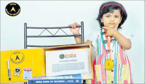 ପାରାଦୀପ,୨୬ା୧୦(ସ୍ବ.ପ୍ର.): ଜଗତ୍ସିଂହପୁର ଜିଲା ପାରାଦୀପ ପିପିଏଲ ଟାଉନଶିପରେ ରହୁଥିବା ଗଗନ ବିହାରୀ ସାହୁଙ୍କ ୩ ବର୍ଷୀୟା ଝିଅ ଆଦ୍ୟାଶାଙ୍କୁ ମିଳିଛି ଇଣ୍ଡିଆ ବୁକ୍ ରେକର୍ଡ ସାର୍ଟିଫିକେଟ। ତାଙ୍କର ଅସାଧାରଣ ସ୍ମରଣଶକ୍ତି ପାଇଁ ଏହି ସାର୍ଟିଫିକେଟ ମିଳିଛି ବୋଲି ତାଙ୍କ ବାପା ଗଗନ କହିଛନ୍ତି। ଆଦ୍ୟାଶାଙ୍କ ଜନ୍ମ ୨୦୧୯ ଅଗଷ୍ଟ ୨୬ ରେ। ଏହି ୩ ବର୍ଷ ବୟସରେ ସେ ୪୫ ଗାଡ଼ିର ନାମ କହି ପାରୁଛନ୍ତି। ୫୩ ପ୍ରଜାତିର ପକ୍ଷୀଙ୍କ ନାମ କହିବା ସହ ଚିହ୍ନି ପାରୁଛନ୍ତି। ୪୭ ପ୍ରକାର ଫଳର ନାମ କହିବା ସହ ଚିହ୍ନଟ କରିପାରୁଛନ୍ତି। ୬୬ ପ୍ରାଣୀଙ୍କ ନାମ, ୧୫ ପ୍ରକାର ପରିବା, ୧୧ ପ୍ରକାର ଆକାର(ସ୍ପେସ୍), ଶରୀରର ୨୮ ଅଙ୍ଗ, ୭୩ଟି ଦେଶର ରାଜଧାନୀ ନାମ, ଭାରତର ସମସ୍ତ ରାଜ୍ୟ ଓ କେନ୍ଦ୍ରଶାସିତ ଅଞ୍ଚଳର ନାମ, ୭୧ ଶବ୍ଦର ପ୍ରତିଶବ୍ଦ, ୨୦ଟି ଦେଶର ଜାତୀୟ ପ୍ରତୀକର ନାମ, ୭୨ କବିତା ଆବୃତ୍ତି, ୮ଟି ଗ୍ରହର ନାମ, ୭ଟି ମହାଦୀପ ନାମ, ୫ଟି ମହାସାଗର ନାମ ଭଳି ଅନେକ ସାଧାରଣ ଜ୍ଞାନ ଅନର୍ଗଳ କହି ପାରୁଛନ୍ତି। ଏପରି ବିସ୍ମୟ ଶିଶୁଙ୍କ ଭବିଷ୍ୟତ ଉଜ୍ଜ୍ୱଳ ପାଇଁ ମା’ ବାପା ଓ ପିପିଏଲ ପରିବାର ନିଜକୁ ଭାଗ୍ୟବାନ ମନେ କରୁଛନ୍ତି ବୋଲି ଦର୍ଶାଇଛନ୍ତି। ଆଦ୍ୟାଶାଙ୍କ ପୈତୃକ ଗ୍ରାମ ଗଞ୍ଜାମ ଜିଲାରେ ବୋଲି ସୂଚନା ମିଳିଛି।