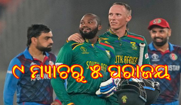 ଅହମଦାବାଦ, ୧୧।୧୧ ଚଳିତ ଦିନିକିଆ କ୍ରିକେଟ ବିଶ୍ୱକପରେ ୩ ଥର ବିପର୍ଯ୍ୟୟ ଘଟାଇ ଟିପ୍‌ ଅଫ୍‌ ଦି ଟୁର୍ନାମେଣ୍ଟ ବିବେଚିତ ହେଉଥିବା ଆଫଗାନିସ୍ତାନ ୯ ମ୍ୟାଚରୁ ୫ମ ପରାଜୟ ସହ ଷଷ୍ଠ ସ୍ଥାନରେ ସନ୍ତୁଷ୍ଟ ରହିଛି। ଅନ୍ୟପକ୍ଷେ ବିଜୟ ସହ ଲିଗ୍‌ ପର୍ଯ୍ୟାୟ ଶେଷ କରିଛି ଦକ୍ଷିଣ ଆଫ୍ରିକା। ଶୁକ୍ରବାର ଅନୁଷ୍ଠିତ ମ୍ୟାଚରେ ଦକ୍ଷିଣ ଆଫ୍ରିକା ୫ ଉଇକେଟରେ ଆଫଗାନିସ୍ତାନକୁ ପରାସ୍ତ କରିଛି। ଆଫଗାନିସ୍ତାନ ୫୦ ଓଭରରେ ୨୪୪ ରନ୍‌ କରି ଅଲ୍‌ଆଉଟ ହୋଇଥିବାବେଳେ ଦକ୍ଷିଣ ଆଫ୍ରିକା ୪୭.୩ ଓଭରରେ ୫ ଉଇକେଟ ହରାଇ ୨୪୭ ରନ ସଂଗ୍ରହ କରି ନେଇଥିଲା। ଅପରାଜିତ ୭୬ ରନ୍‌ର ଇନିଂସ ପାଇଁ ଦକ୍ଷିଣ ଆଫ୍ରିକାର ରସି ଭାନ୍‌ ଡର୍‌ ଡୁସେନ ପ୍ଲେୟର ଅଫ୍‌ ଦି ମ୍ୟାଚ ହୋଇଥିଲେ। ପୂର୍ବ ମ୍ୟାଚରେ ଭାରତଠାରୁ ହାରିଥିବା ଦକ୍ଷିଣ ଆଫ୍ରିକା ଏଠାରେ ବିଜୟ ଫଳରେ ଅଷ୍ଟ୍ରେଲିଆ ବିପକ୍ଷ ସେମିଫାଇନାଲ ପୂର୍ବରୁ ମନୋବଳ ଦୃଢ଼ କରିଛି। ଏହି ଦଳ ୯ ମ୍ୟାଚରୁ ୭ ବିଜୟ ସହ ୧୪ ପଏଣ୍ଟ ପାଇ ଟେବୁଲର ଦ୍ୱିତୀୟ ସ୍ଥାନରେ ରହିଛି।