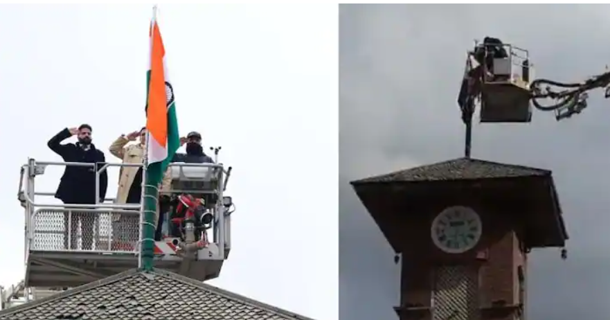 ସାମାଜିକ କର୍ମୀ ସାଜିଦ ୟୁସୁଫ ଶାହା ଓ ସାହିଲ ବାଶିର ଭଟ କିଛି ସମର୍ଥକଙ୍କ ସହ ମିଶି ବୁଧବାର କ୍ଲାକ୍ ଟାଓ୍ବାର(ଘଣ୍ଟା ଘର)ରେ ପତକା ଉତ୍ତୋଳନ ଉତ୍ସବ ଆୟୋଜନ କରିଥିଲେ। ଘଣ୍ଟା ଘର ଉପରେ ଜାତୀୟ ପତକା ଲଗାଇବା ପାଇଁ ସେମାନେ ହାଇଡ୍ରୋଲିକ୍ କ୍ରେନ ବ୍ୟବହାର କରିଥିଲେ।