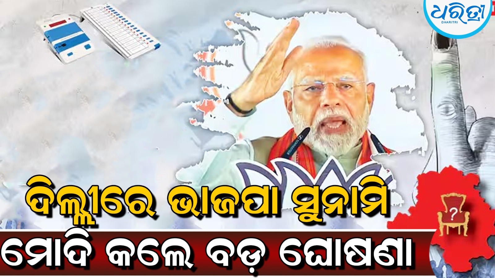 ନୂଆଦିଲ୍ଲୀ,୮।୨: ଦିଲ୍ଲୀ ର୍ନିବାଚନ ଫଳାଫଳ ଉପରେ ପ୍ରଧାନମନ୍ତ୍ରୀ ନରେନ୍ଦ୍ର ମୋଦି ତାଙ୍କର ପ୍ରଥମ ପ୍ରତିକ୍ରିୟା ଦେଇଛନ୍ତି। ମୋଦି କହିଛନ୍ତି ଯେ ଦିଲ୍ଲୀର ସର୍ବାଙ୍ଗୀନ ବିକାଶ ଏବଂ ଏଠାକାର ଲୋକଙ୍କ ଜୀବନକୁ ଉନ୍ନତ କରିବା ପାଇଁ ଆମେ କୌଣସି କସରତ ଛାଡ଼ିବୁ ନାହିଁ, ଏହା ଆମର ଗ୍ୟାରେଣ୍ଟି।