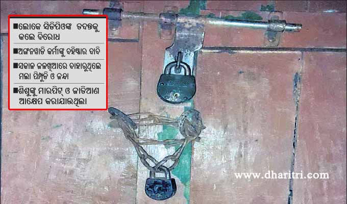 ଅଙ୍ଗନୱାଡି କର୍ମୀଙ୍କ ବିରୋଧରେ ବାରମ୍ବାର ଅଭିଯୋଗ ପରେ ଘଟଣାର ତଦନ୍ତ ନ କରି ନୂଆଗାଁ ସିଡିପିଓ ଘଟଣାକୁ ସମାଧାନ କରିବାକୁ ଆସିବା ପରେ ଗାଁ ଲୋକ ଉତ୍ତେଜିତ ହୋଇ ଏହାର ପ୍ରତିବାଦ କରିଛନ୍ତି। ଅଙ୍ଗନୱାଡି କର୍ମୀଙ୍କୁ ବହିଷ୍କାର କରା ନ ଗଲେ କେନ୍ଦ୍ରରୁ ତାଲା ଖୋଲିବନି ବୋଲି ଗାଁ ଲୋକ ଚେତାବନୀ ଦେଇଛନ୍ତି।