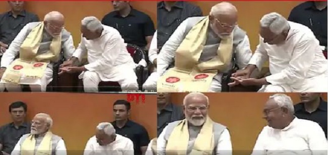 ସୂଚନାଯୋଗ୍ୟ, କିଛି ଦିନ ପୂର୍ବରୁ ବିହାର ମୁଖ୍ୟମନ୍ତ୍ରୀ ନୀତୀଶ କୁମାର ସଂସଦରେ ପ୍ରଧାନମନ୍ତ୍ରୀ ନରେନ୍ଦ୍ର ମୋଦିଙ୍କ ପାଦ ଛୁଇଁଥିଲେ। ବର୍ତ୍ତମାନ, ନାଲନ୍ଦା ବିଶ୍ୱବିଦ୍ୟାଳୟର ନୂତନ କ୍ୟାମ୍ପସର ଉଦଘାଟନ ଅବସରରେ ଆୟୋଜିତ କାର୍ଯ୍ୟକ୍ରମରେ ମୁଖ୍ୟମନ୍ତ୍ରୀ ନୀତୀଶ କୁମାର ମଞ୍ଚ ଉପରେ ପ୍ରଧାନମନ୍ତ୍ରୀ ମୋଦିଙ୍କ ଆଙ୍ଗୁଳି ଦେଖୁଥିବାର ନଜର ଆସିଛନ୍ତି। ଏହି ଘଟଣାର ଭିଡିଓ ସୋସିଆଲ ମିଡିଆରେ ଭାଇରାଲ ହେବାରେ ଲାଗିଛି। ମୁଖ୍ୟମନ୍ତ୍ରୀ ନୀତୀଶ କୁମାର କିପରି ମୋଦିଙ୍କ ହାତ ଧରିଛନ୍ତି ଏବଂ ତାଙ୍କ ଆଙ୍ଗୁଠି ଦେଖୁଛନ୍ତି ତାହା ସ୍ପଷ୍ଟ ଭାବେ ଦେଖାଯାଇପାରେ। ଏହି ସମୟରେ ସେମାନଙ୍କ ମଧ୍ୟରେ କିଛି ବାର୍ତ୍ତାଳାପ ହୋଇଥିଲା ଏବଂ ପରେ ଉଭୟ ନେତା ହସିଲେ। ବର୍ତ୍ତମାନ ତାଙ୍କର ଏହି ଭିଡିଓ ସବୁଆଡେ ଭାଇରାଲ ହେଉଛି।