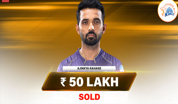 କୋଚି,୨୩।୧୨: ଅଷ୍ଟ୍ରେଲିଆରେ ଭାରତକୁ ଟେଷ୍ଟ ସିରିଜରେ ଐତିହାସିକ ବିଜୟ ଭେଟି ଦେଇଥିବା ଅଧିନାୟକ ଅଜିଙ୍କ୍ୟ ରାହାନେଙ୍କୁ କିଣିଛି ଚେନ୍ନାଇ ସୁପର କିଙ୍ଗ୍ସ। ଶୁକ୍ରବାର ଚାଲିଥିବା ମିନି ଅକ୍ସନରେ ଚେନ୍ନାଇ ମାତ୍ର ୫୦ ଲକ୍ଷ ମୂଲ୍ୟରେ ତାଙ୍କୁ ଦଳରେ ସାମିଲ କରିଛି। ଏହା ତାଙ୍କ ବେସ୍‌ ପ୍ରାଇସ୍‌ ମଧ୍ୟ ଥିଲା।
